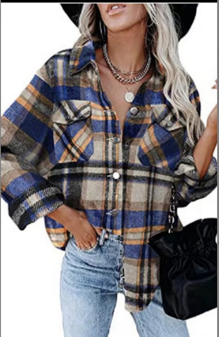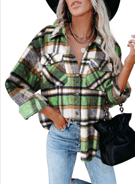 2022 Autumn Winter Amazon Plaid Woolen Flannel Shirt Coat Up