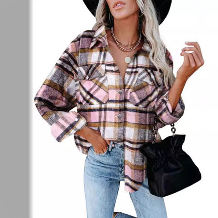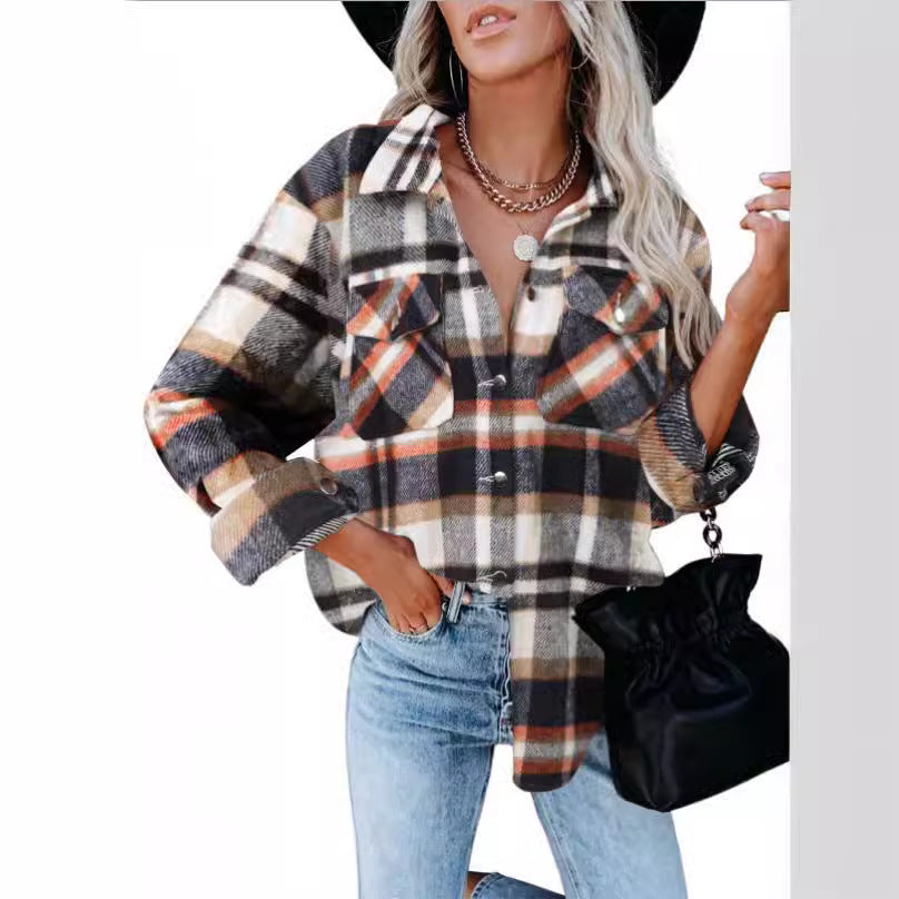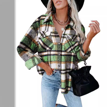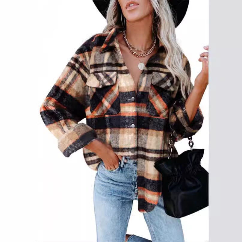 This women's clothing item aligns with foreign trade requirements, presenting a European and American aesthetic that suits cross-border distribution. The flannel shirt coat structure allows repeat wear, while the plaid design remains visually consistent and easy to coordinate.