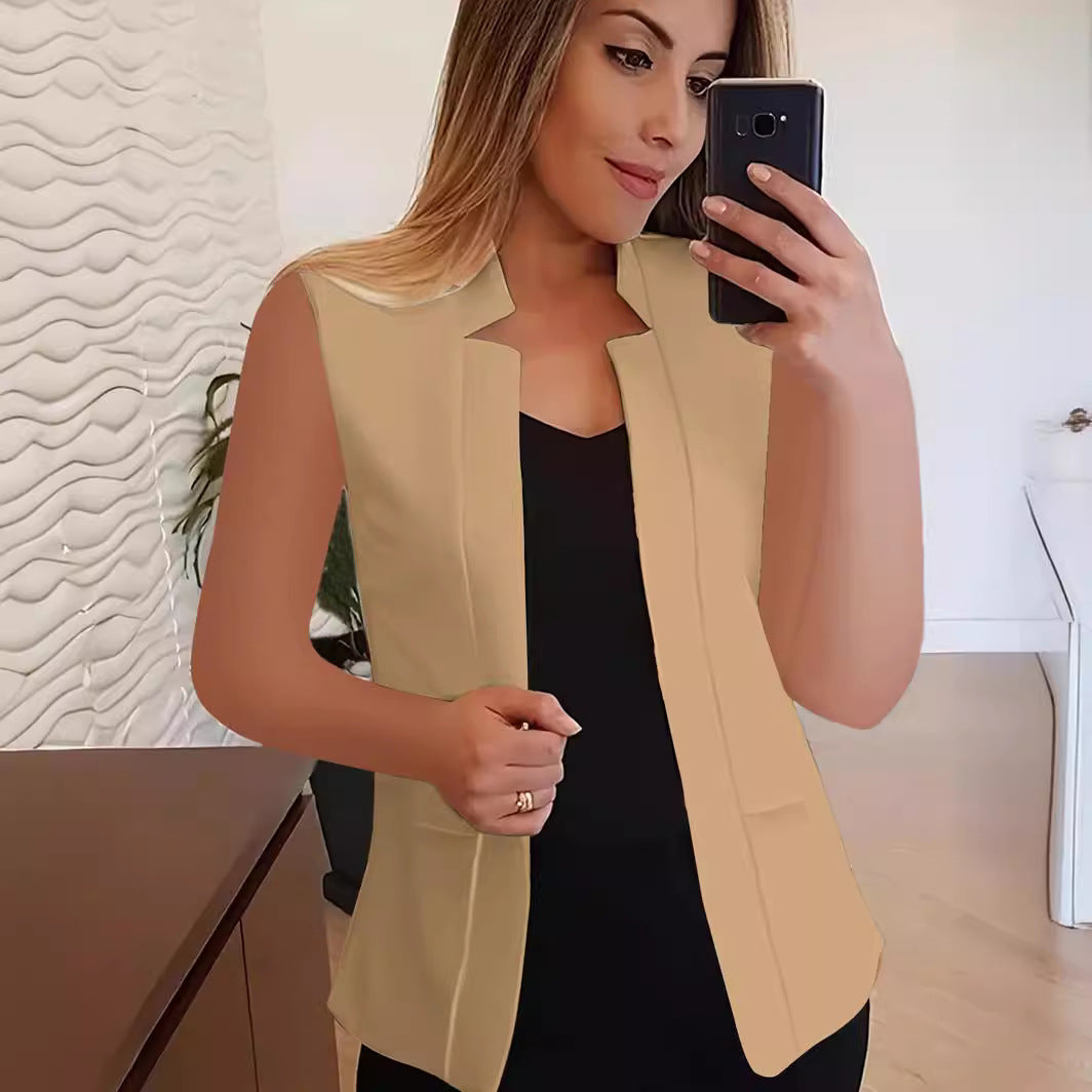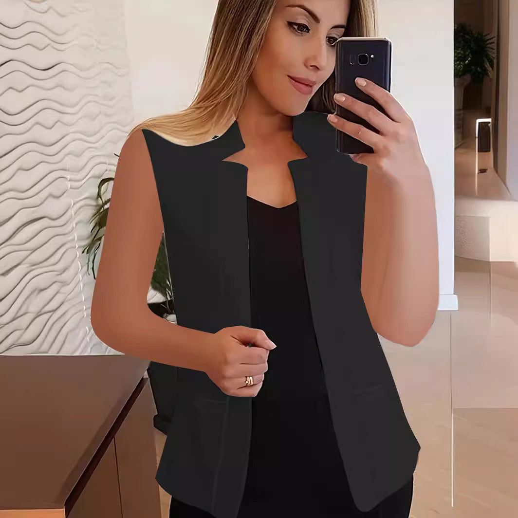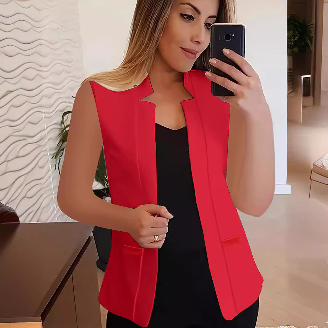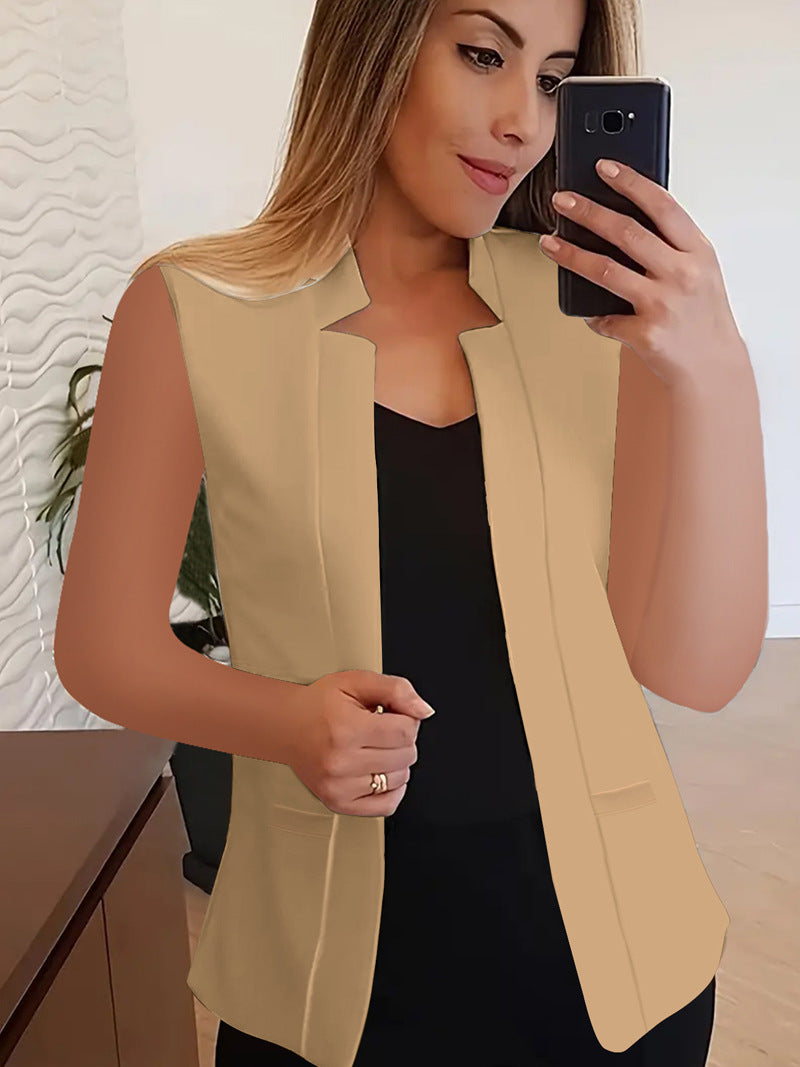 Designed for modern women, this chic jacket combines a sleek solid-color design with practical vest pockets for a professional yet stylish look, perfect for office wear, meetings, or casual outings.