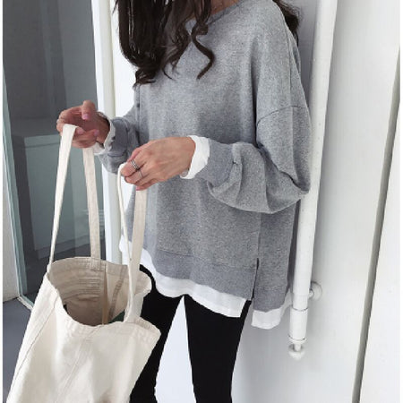 Japanese-Korean Style Fake Two-Piece Sweatshirt