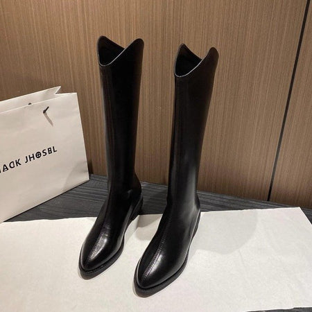 Designed with a thick heel and pointed toe, they provide stability and a fashionable silhouette 🌸. The elastic casual design ensures a snug fit while allowing easy slip-on wear. Crafted from high-quality materials, these boots are soft, durable, and comfortable for long walks, casual outings, or city adventures 🌿. Their Korean-inspired style adds a modern flair to any outfit, effortlessly pairing with jeans, skirts, or dresses.