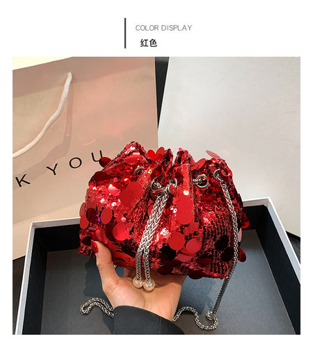 2024 Sequin Evening Bucket Bag – Elegant Retro Crossbody