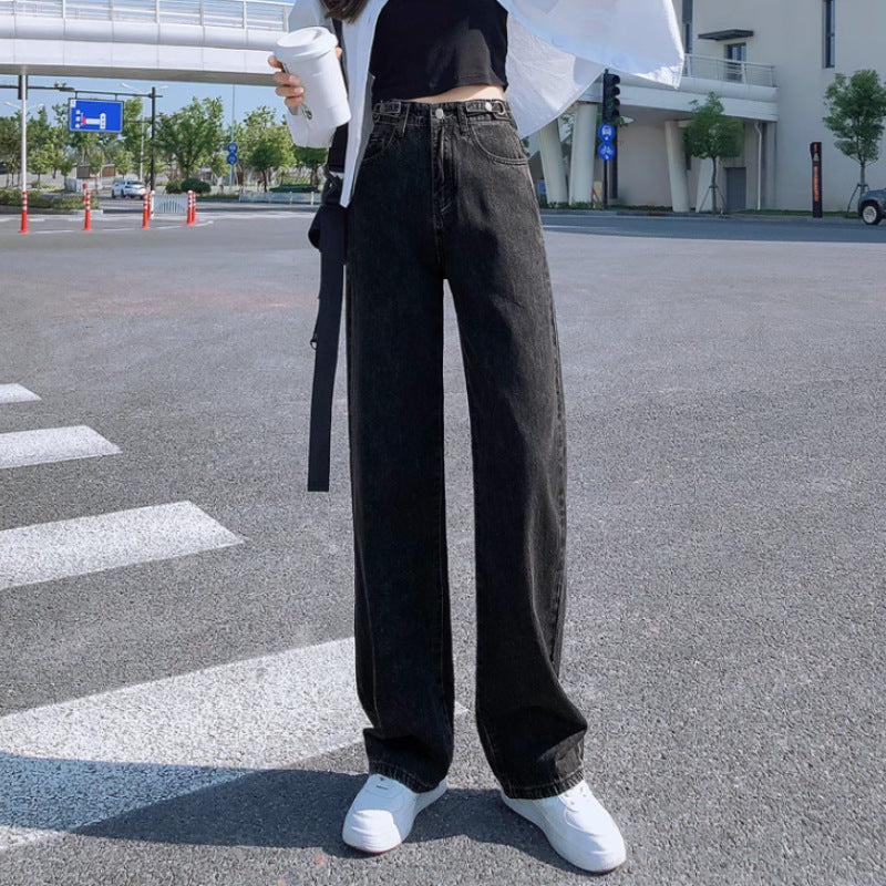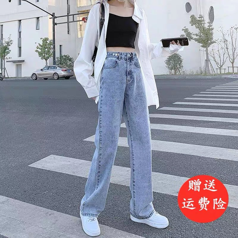 2024 Spring Wide-Leg Straight Jeans for Petite Women