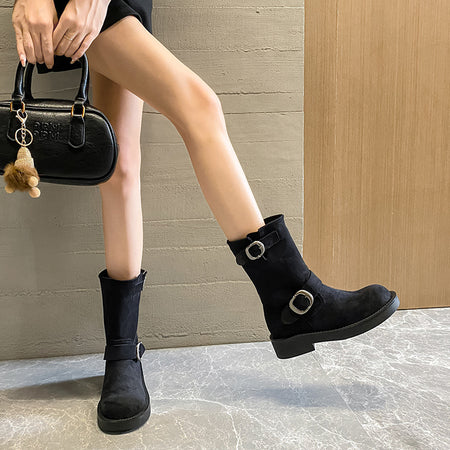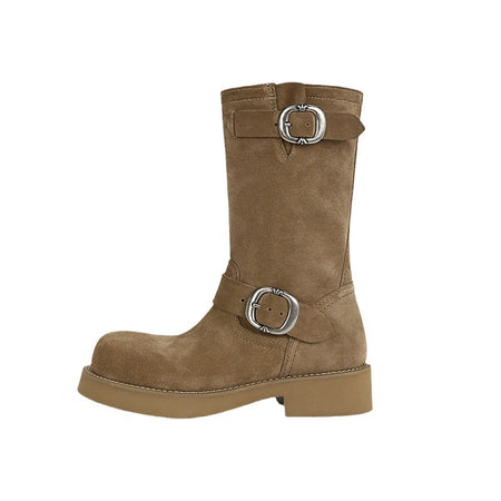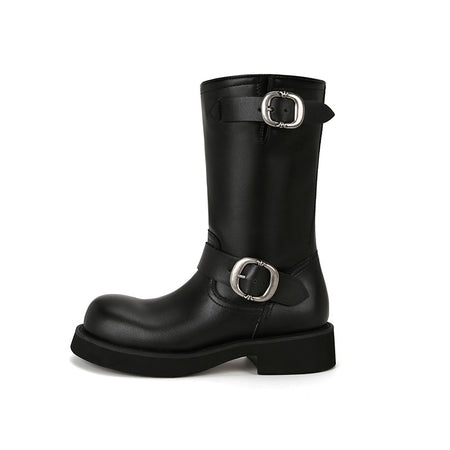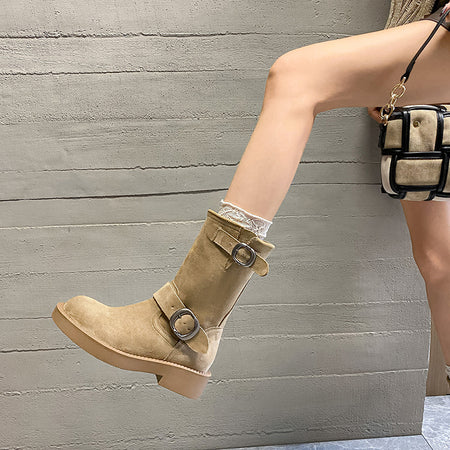 Women’s Retro Thick-Soled Motorcycle Buckle Boots