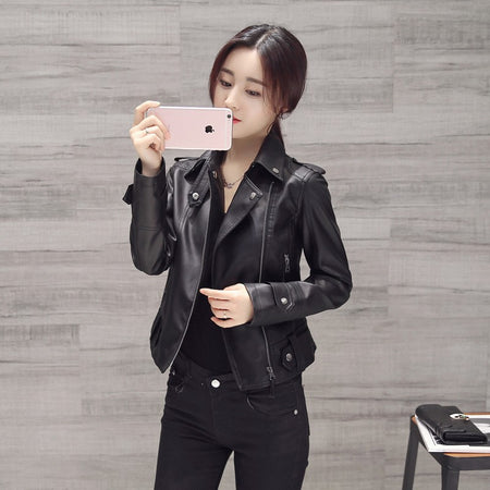 Women’s Korean-Style PU Leather Jacket