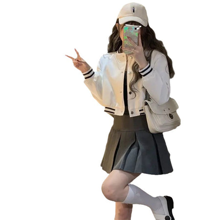 Upgrade your casual look with this trendy short black baseball jacket 👩🎓🖤. Perfect for spring and autumn, it delivers a cool college-style vibe that pairs effortlessly with jeans, skirts, or dresses. The classic black color makes it versatile for everyday wear, while the lightweight and comfy fit ensures you stay stylish and relaxed.