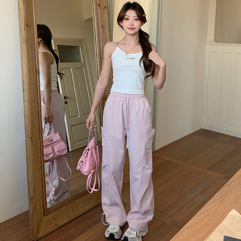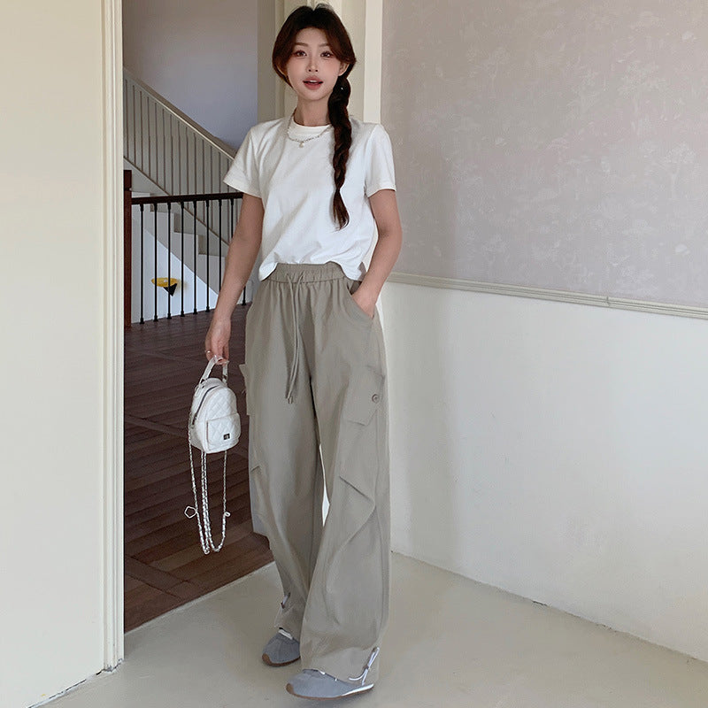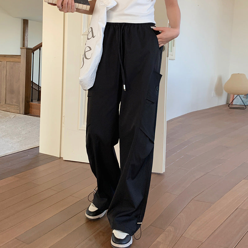 Made from soft, breathable fabric, these pants provide a comfortable drape that moves naturally with your body. The adjustable drawstring waist ensures a perfect fit for all body types, while the straight-to-wide leg design gives a relaxed, vintage-inspired silhouette. Perfect for casual outings, streetwear, or weekend leisure, these pants are versatile and easy to style with blouses, t-shirts, or sweaters.