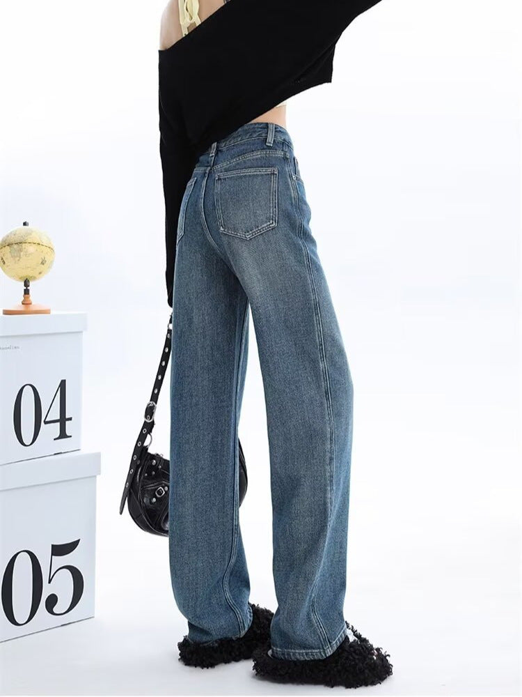 The soft fleece lining on the inside provides excellent insulation, making these pants perfect for autumn and winter wear while remaining lightweight and comfortable. The high-waisted cut helps shape the waist and abdomen, creating a natural slimming and elongating effect. With a straight, loose wide-leg design, these pants drape smoothly from the hips down, enhancing the body line and giving a refined, graceful appearance.