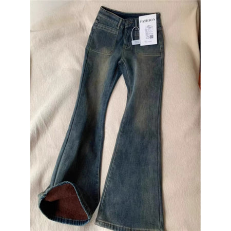 Stay warm and stylish all season with these American Retro Flared Velvet Jeans β exclusively at Tudoholic.com! π