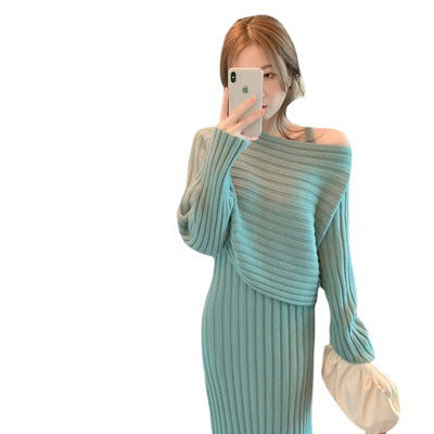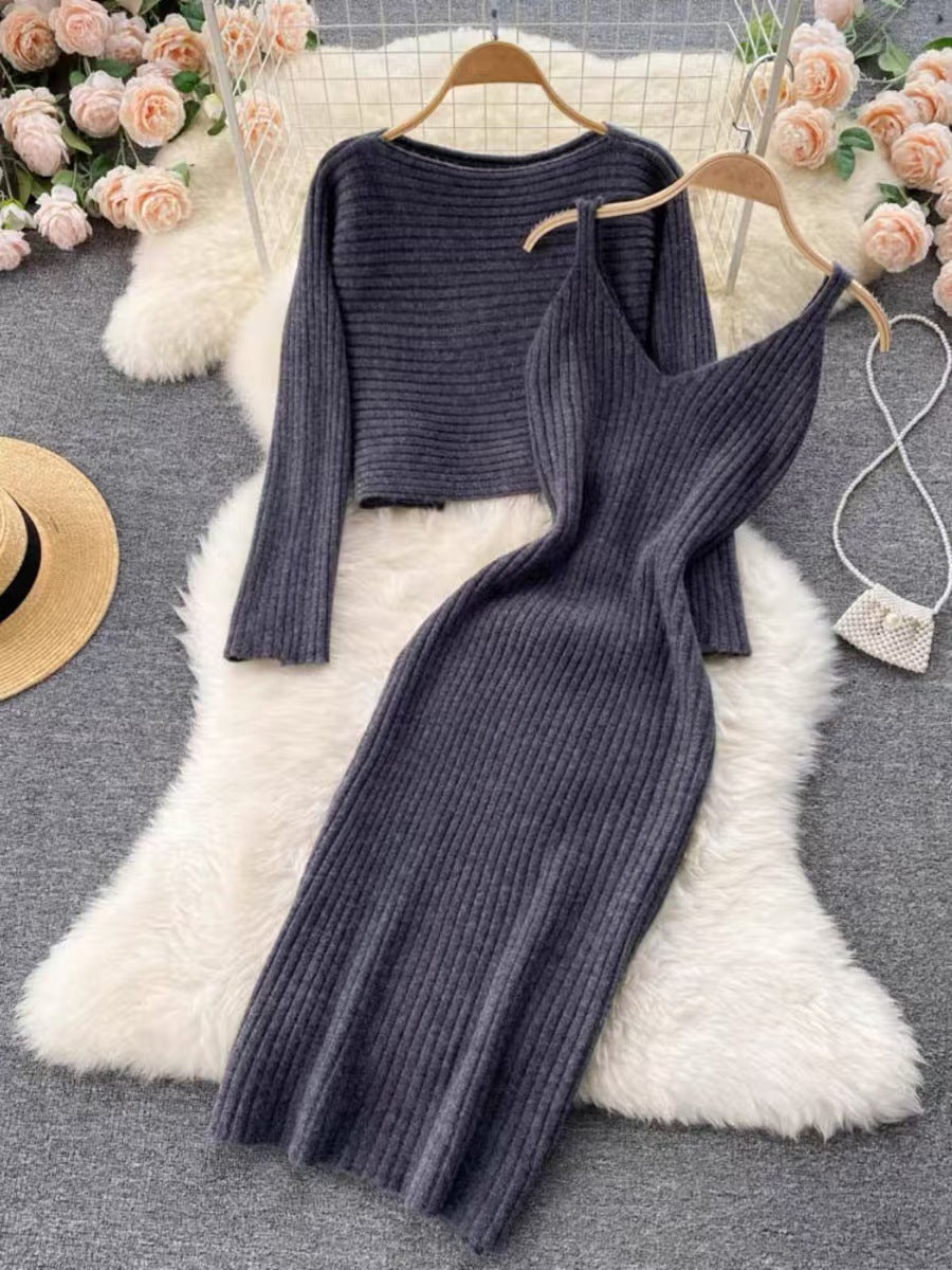 Two-piece set: cozy pullover sweater + sling dress