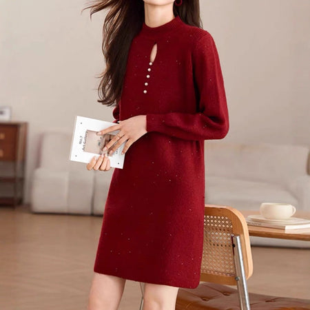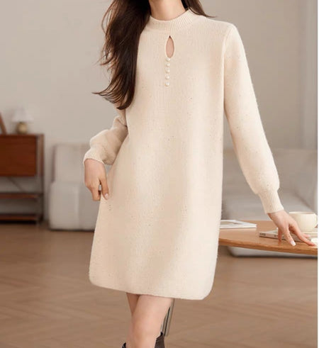 Embrace the cozy-chic vibes of autumn and winter with our bright silk high-neck mid-length knitted sweater dress – a perfect blend of warmth, comfort, and elegance 🌸. Inspired by high-end Korean fashion, this piece is designed for women who want effortless sophistication while staying snug in the chilly season ❄️.