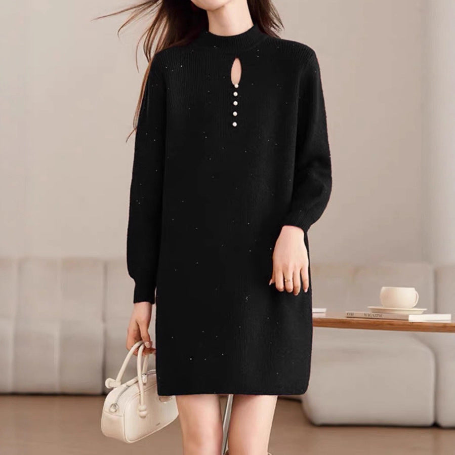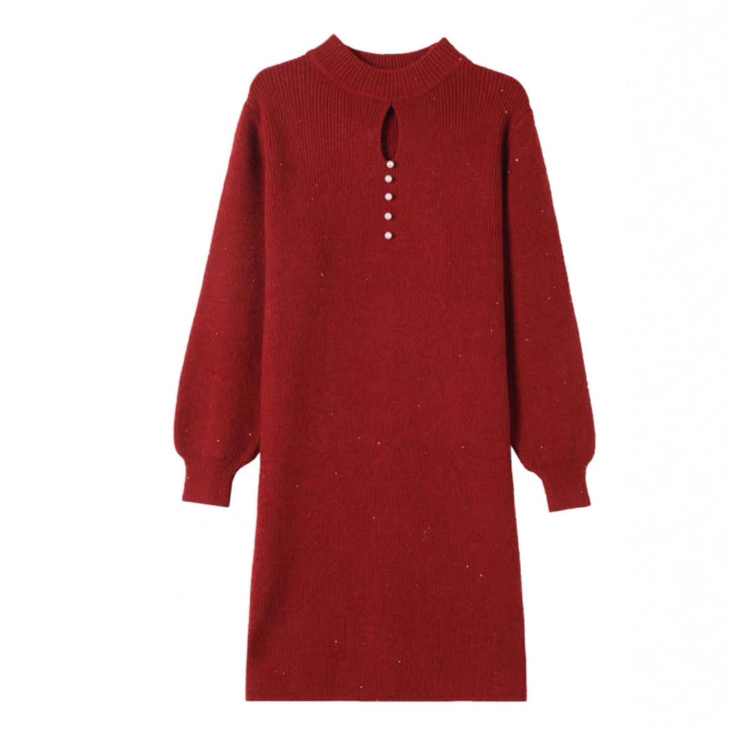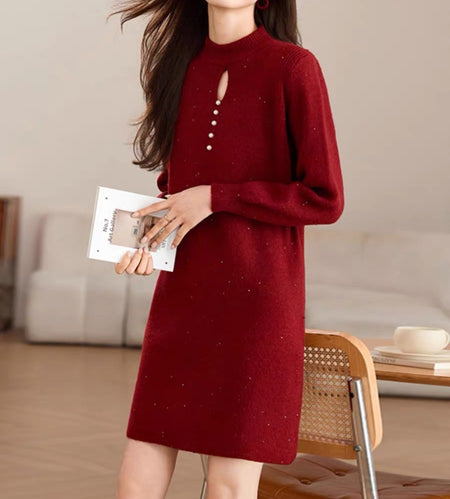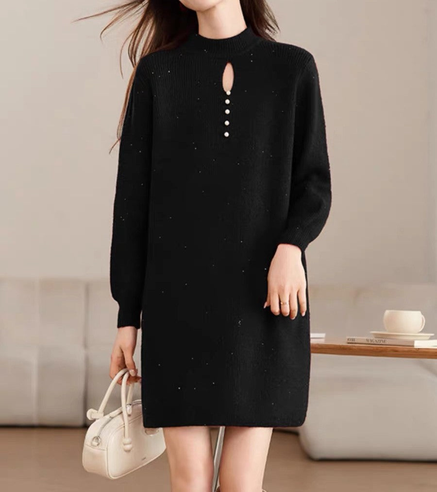 High Neck Knit Sweater Dress
