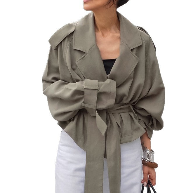 🌟 Bonus: A must-have addition to your wardrobe, this versatile windbreaker is perfect for women who want a fashionable yet practical outerwear piece for autumn. Effortless style meets high-end design in this European-inspired tie coat! 🖤✨