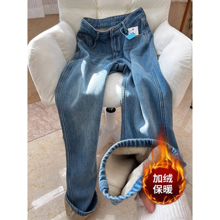 Keep warm and stylish with these Fleece-Lined High-Waist Jeans — exclusively at Tudoholic.com! 💎