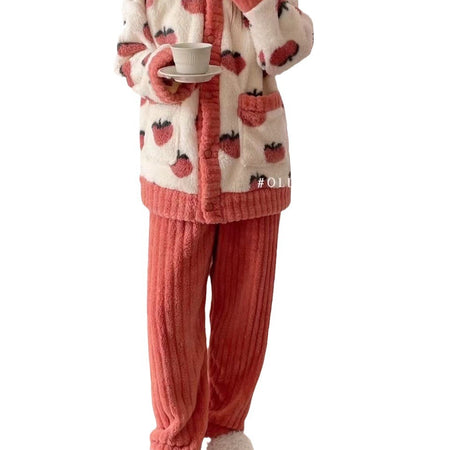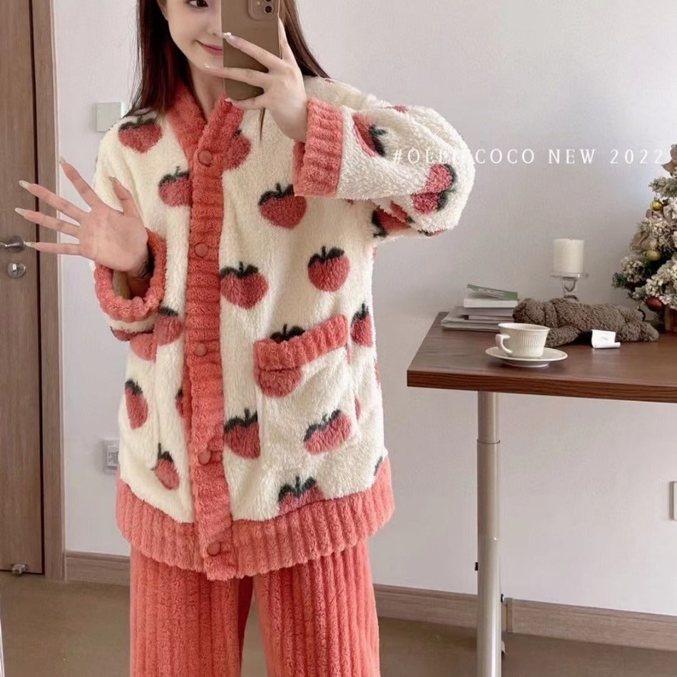 Whether enjoying a quiet night in, reading, or sipping tea, these women’s fleece-lined coral velvet pajamas keep you warm, comfortable, and effortlessly stylish 🌟. A perfect combination of cozy comfort, elegance, and seasonal practicality for your home wardrobe ✨.