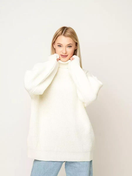 Made from soft, high-quality knit fabric, it keeps you cozy while providing a relaxed, loose-fit design that drapes beautifully over the shoulders. The classic turtleneck ensures warmth during cooler days, and the solid color styling makes it easy to pair with pants, skirts, or layered outfits. Its minimalistic yet fashionable look is perfect for casual outings, office wear, or weekend leisure.