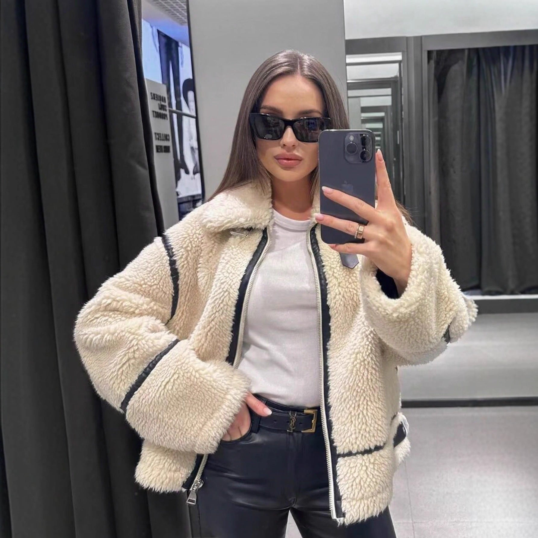 • Lambskin-effect leather with fur lining for warmth 🐑
