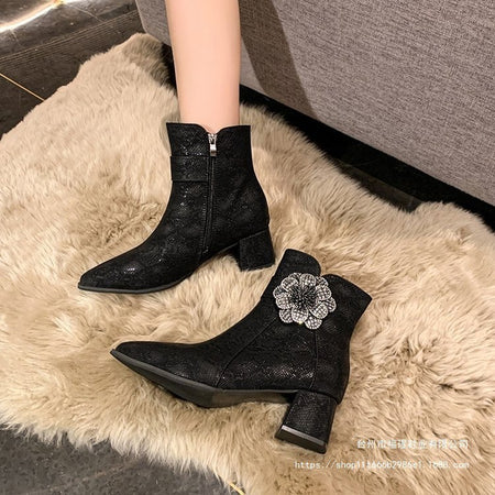 Crafted from high-quality materials, these boots are durable yet comfortable, offering a perfect blend of fashion and function. The thick heel provides stability while elevating your silhouette, and the velvet interior ensures warmth during colder months. Their versatile style pairs effortlessly with skirts, trousers, or jeans, making them a must-have for any autumn or winter wardrobe. 🌟