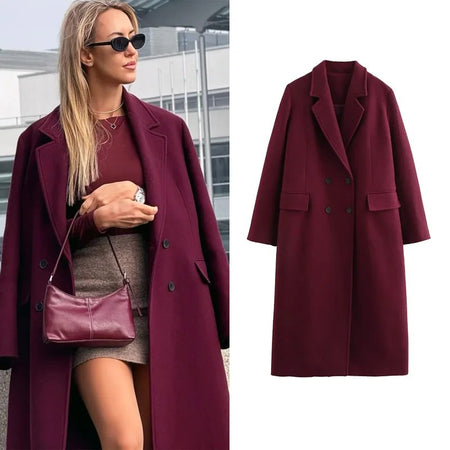 Stay warm, fashionable, and confident with this long Korean-style red woolen coat – a must-have statement piece for winter and early spring! 💖