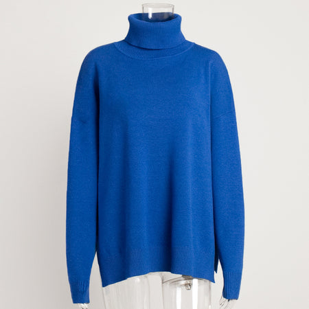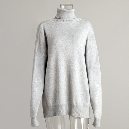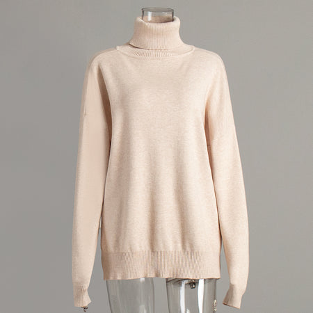 Crafted from soft, high-quality knit fabric, this sweater provides warmth without being heavy, ensuring all-day comfort. The loose fit makes it breathable and easy to layer, while the turtleneck design keeps you snug during chilly days. Its minimalist solid-color look makes it versatile—perfect for pairing with jeans, trousers, or skirts for a polished yet casual vibe. 🌟