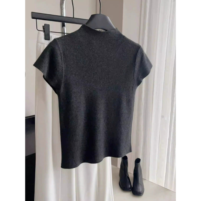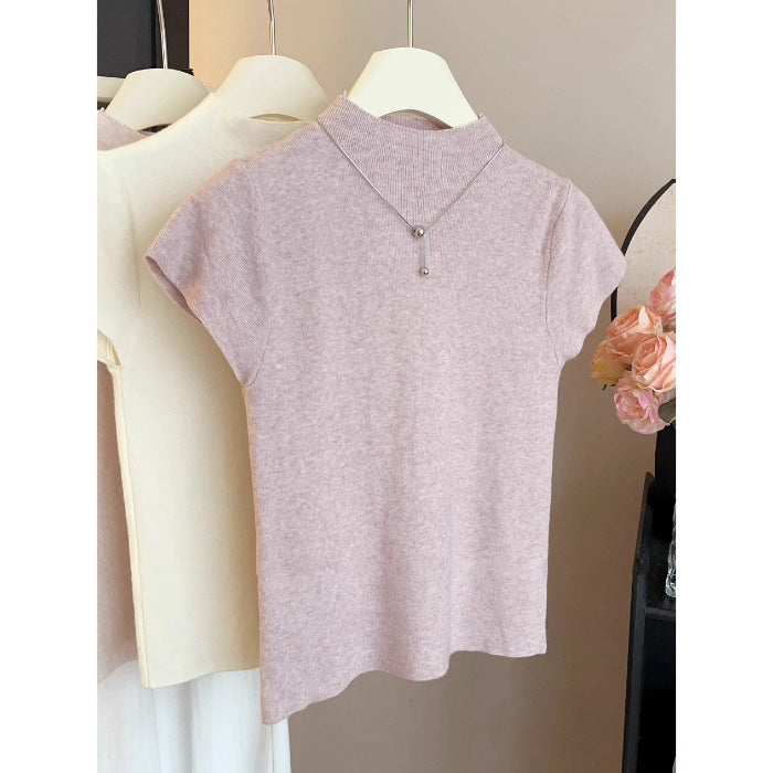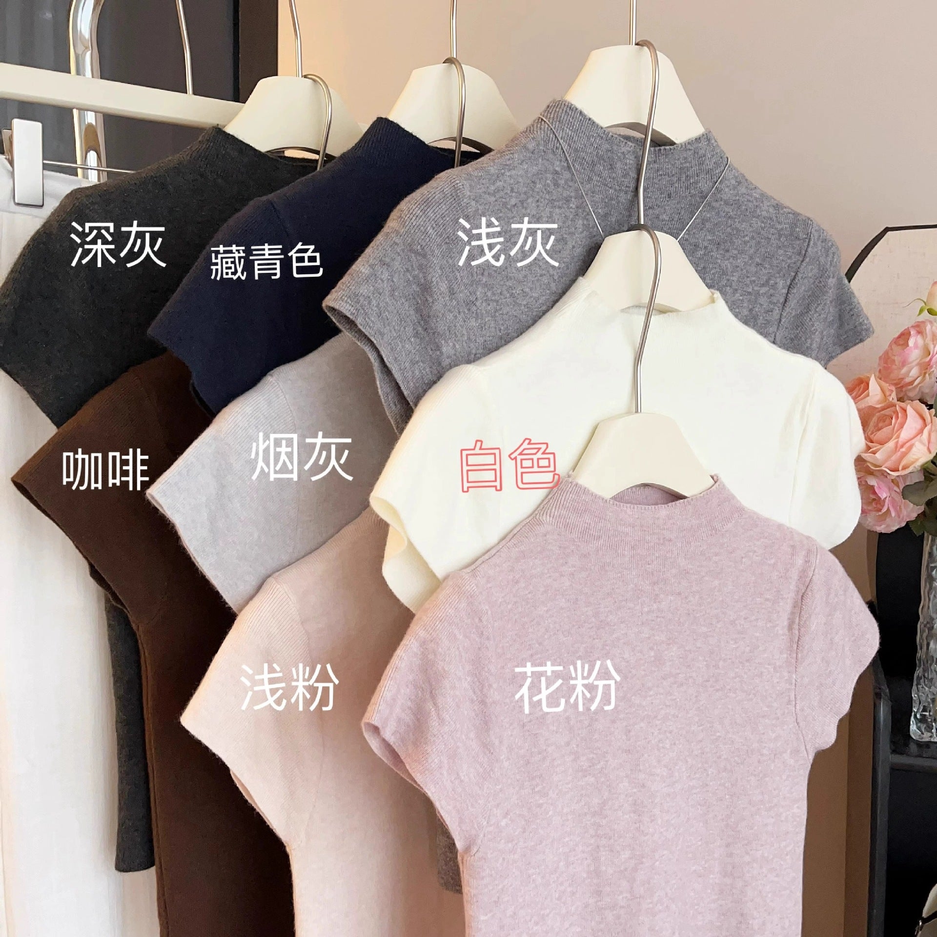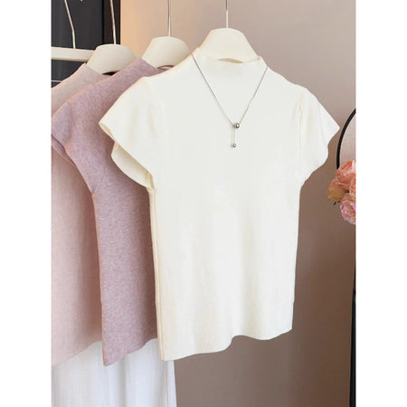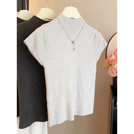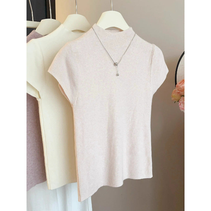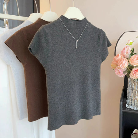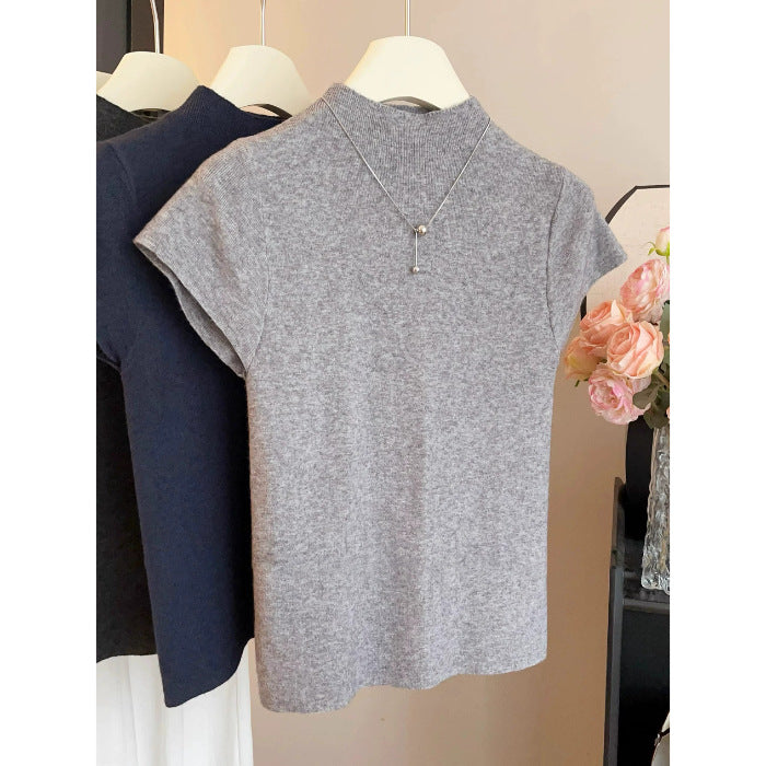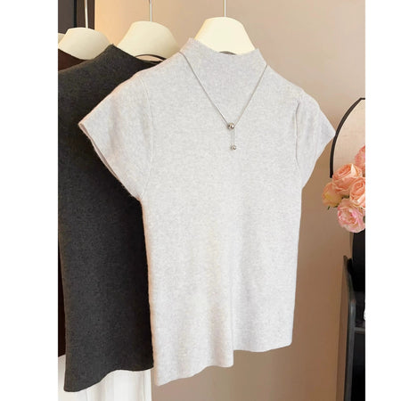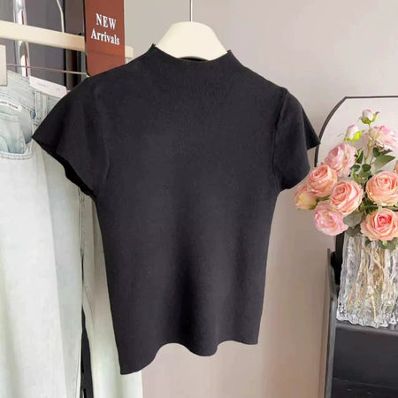 Stay effortlessly chic this season with the Women’s Half Turtleneck Knitwear Short-Sleeved Top 🌸☀️. Perfect for summer wear, this Korean-inspired slim-fit bottoming shirt combines elegance and comfort in one timeless piece.