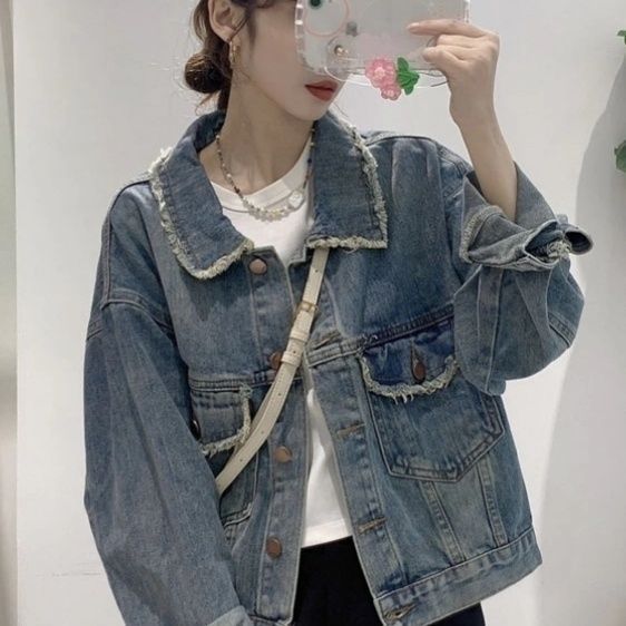 Crafted from soft, durable denim, the jacket features a loose, short design that makes layering easy over sweaters or tops. The long sleeves keep you cozy during chilly days, while the Korean-style aesthetic adds a modern, youthful flair to your seasonal wardrobe. πΈβ¨