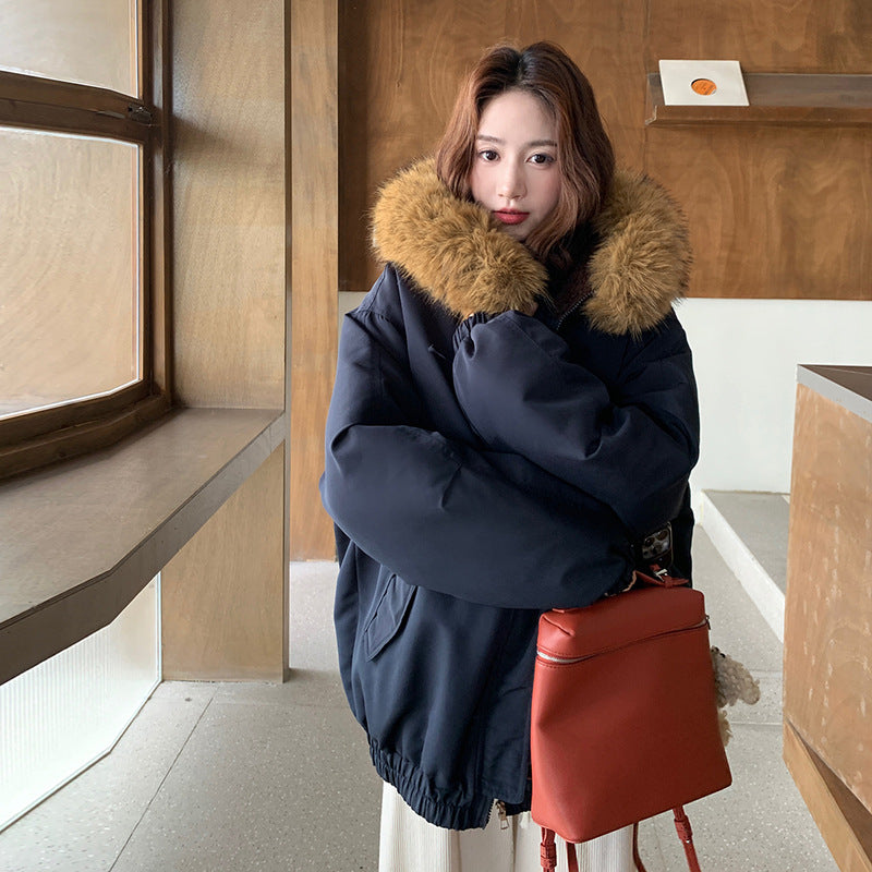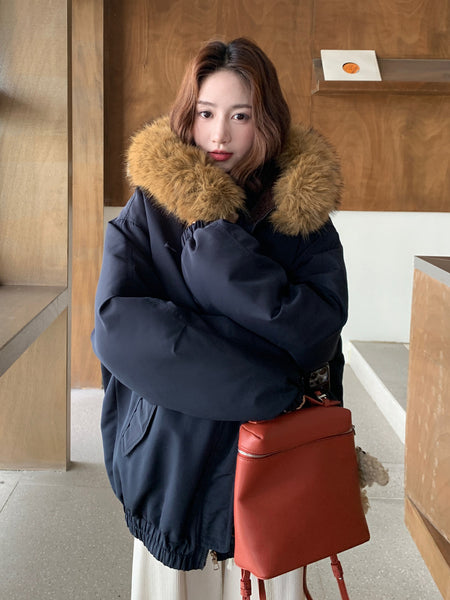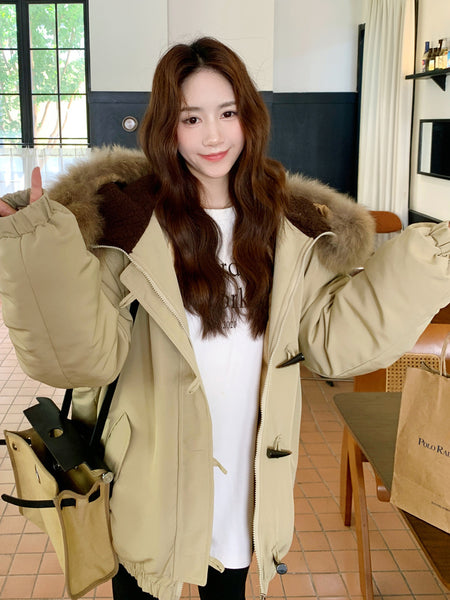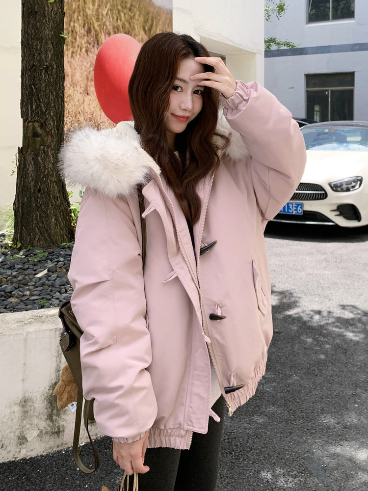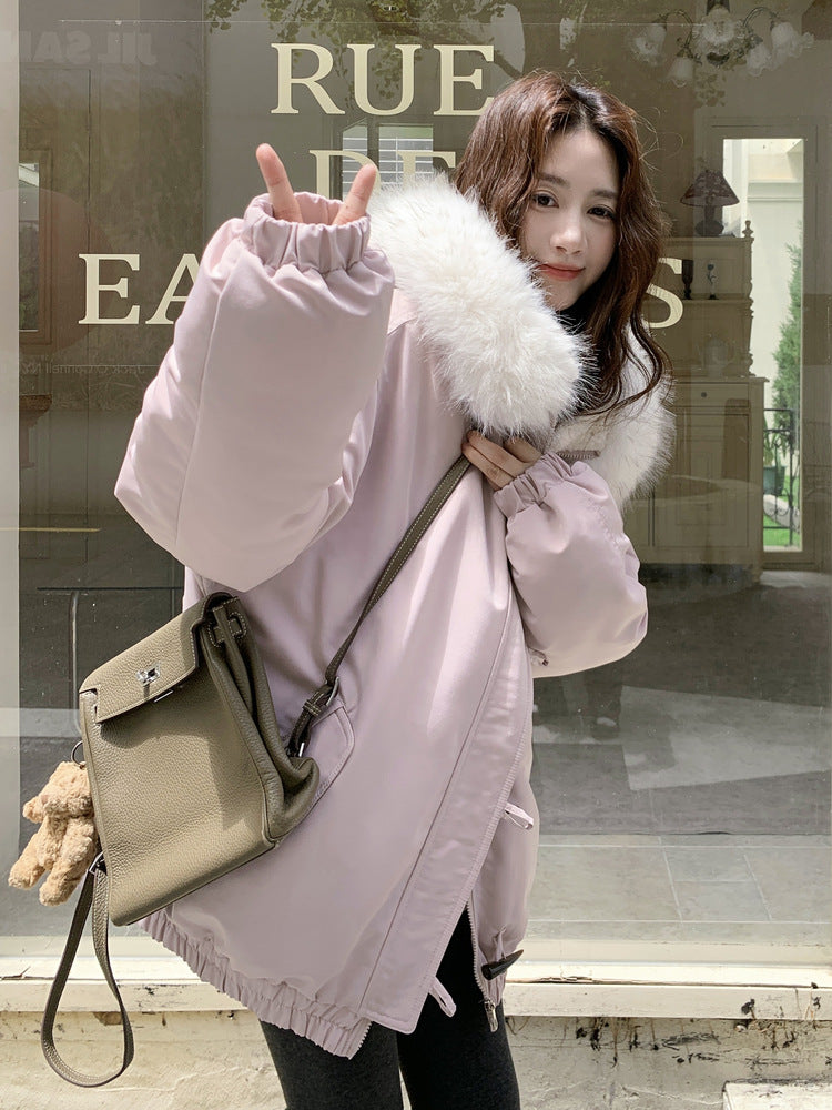 Beat the cold in style with this Korean-style A-Line Down Cotton Puffer Jacket! ❄️💛 Thickened cotton provides warmth, while the large fur collar adds elegance and comfort. Its versatile parka style fits perfectly over casual or semi-formal outfits.