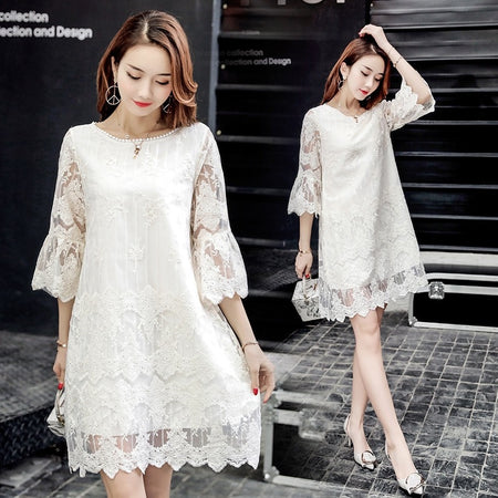 Graceful, Slimming & Absolutely Dreamy! This 2024 K-style A-line dress is the ultimate blend of elegance and trend. Designed with delicate lace embroidery, it features a mid-length fairy-style skirt that flows beautifully with every step.