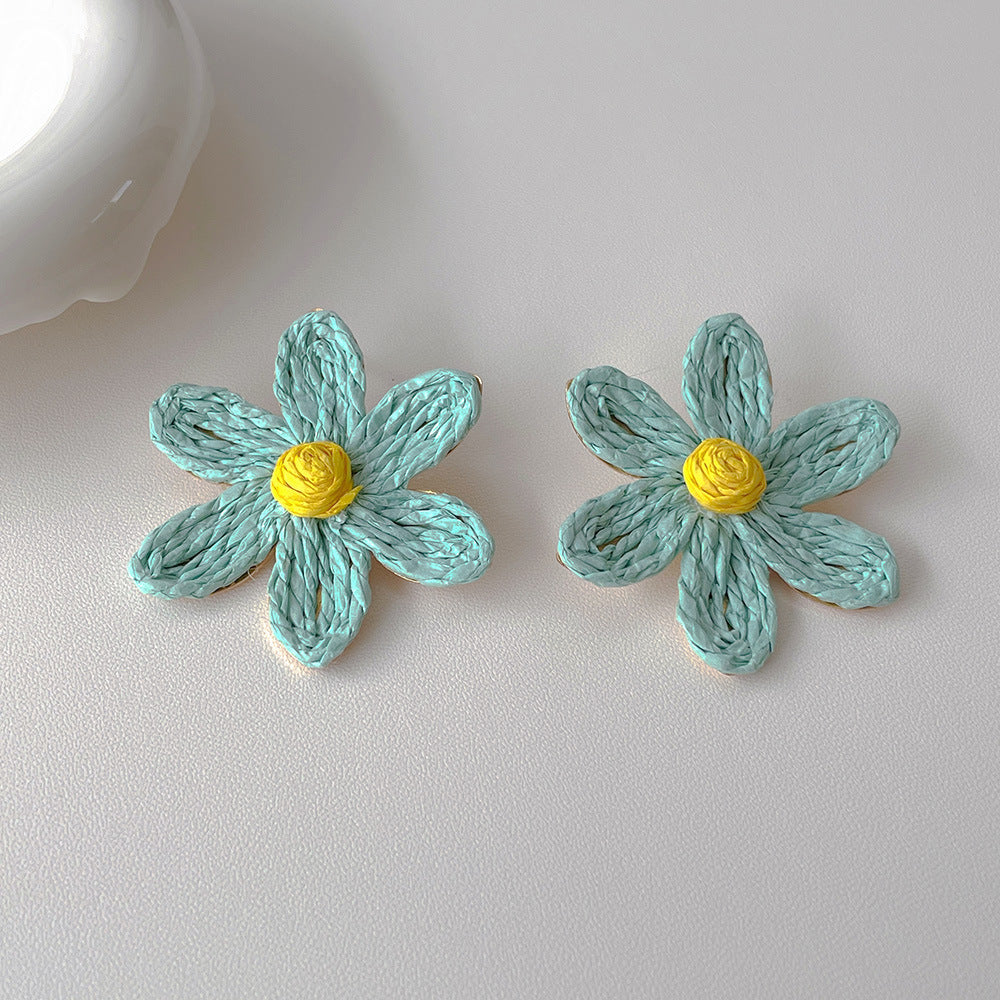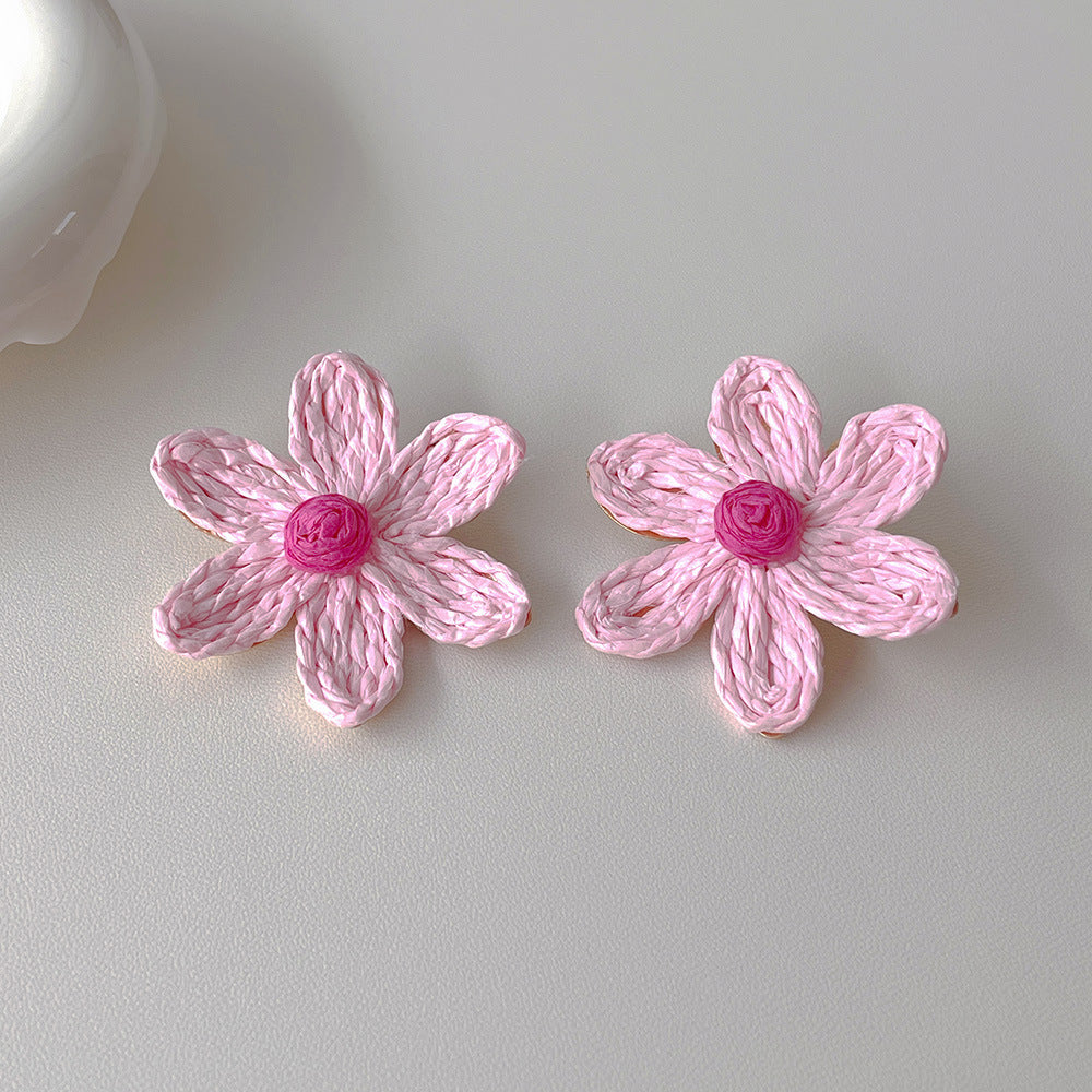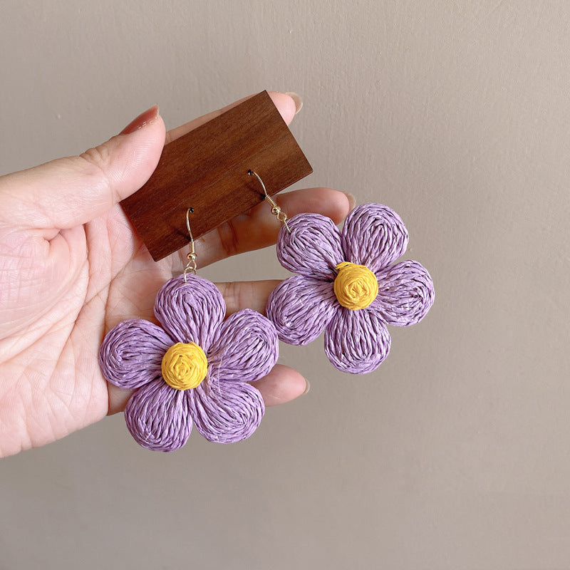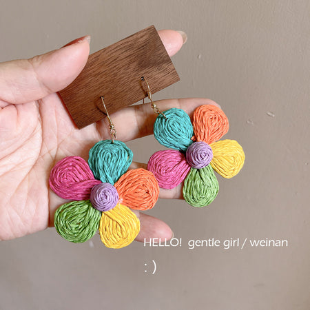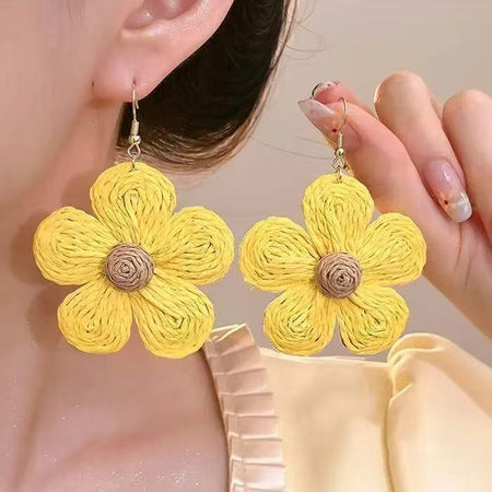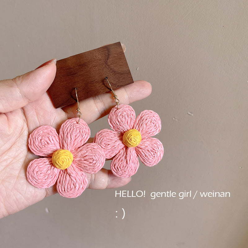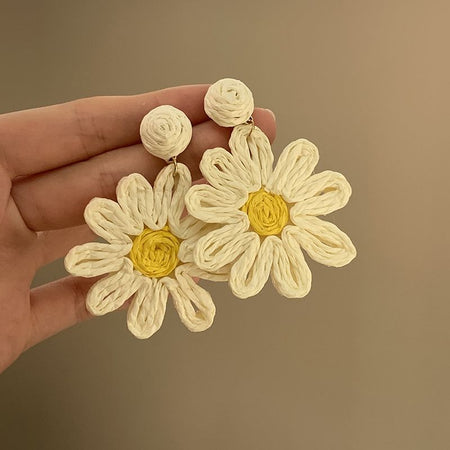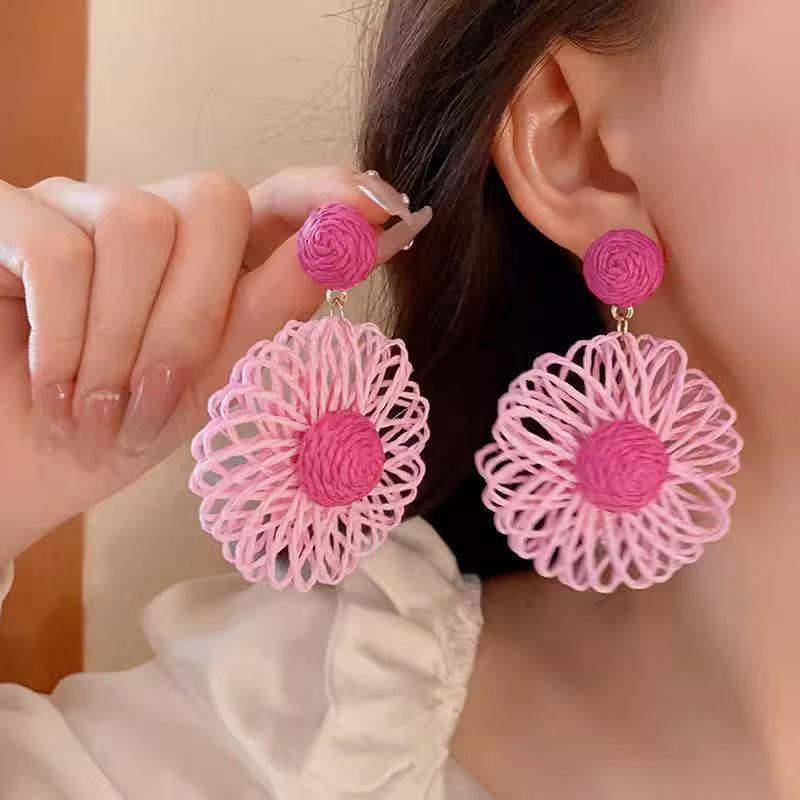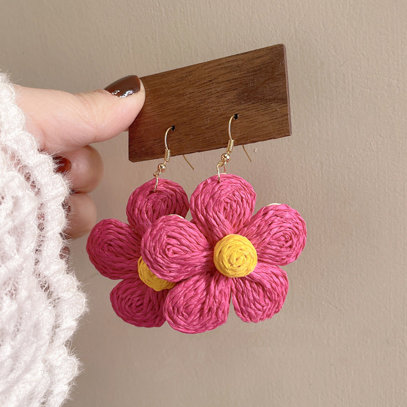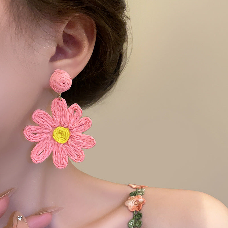 Raffia Flower Hand-Knitted Summer Vacation Earrings