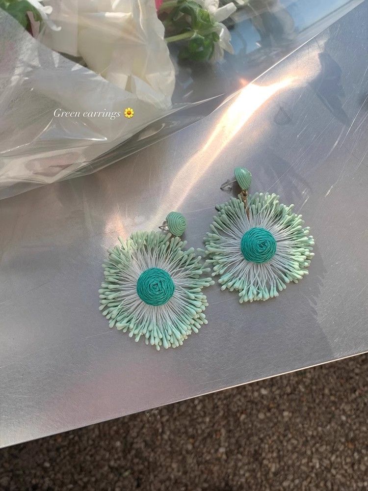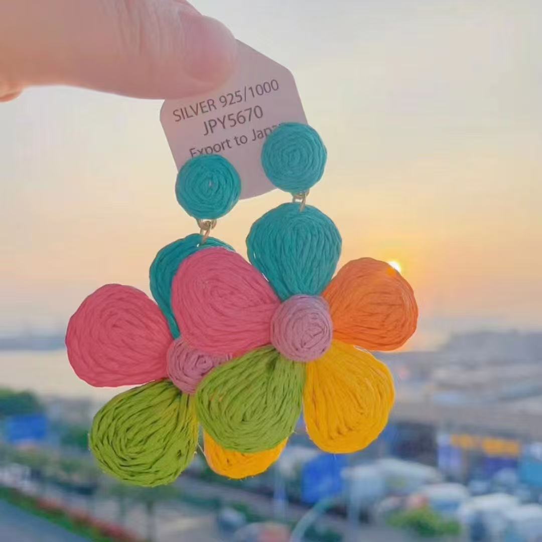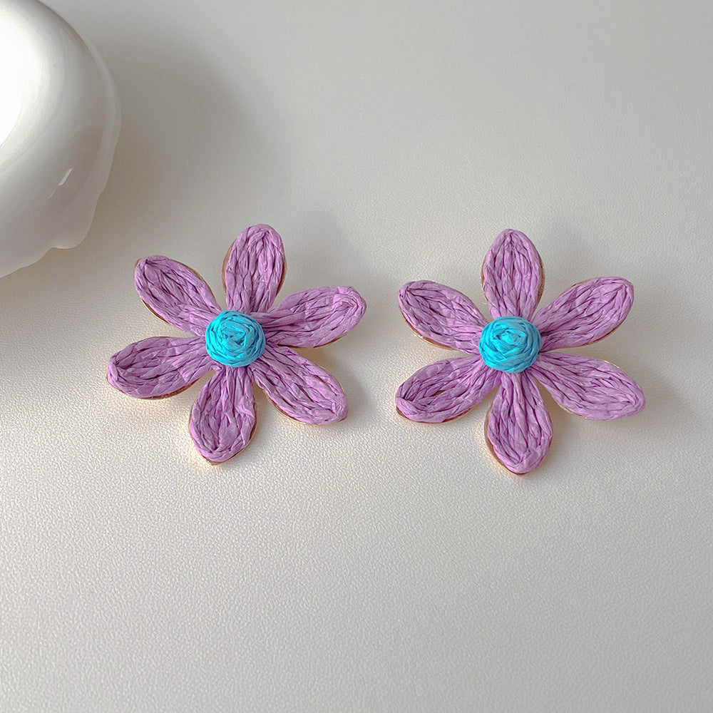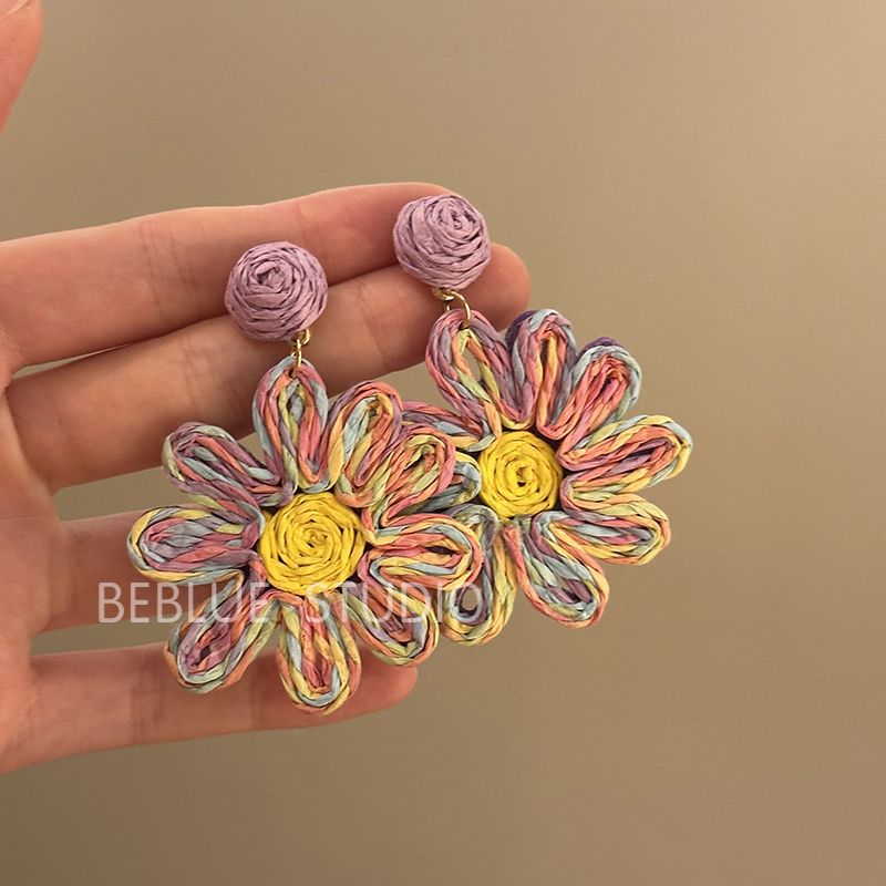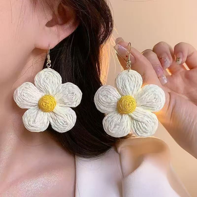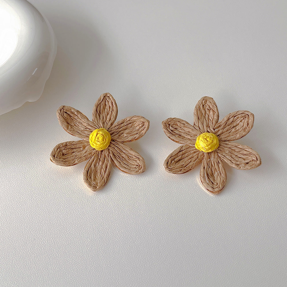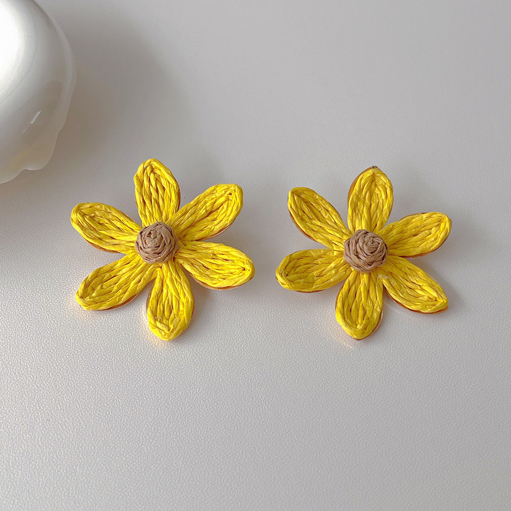 Raffia Flower Hand-Knitted Summer Vacation Earrings