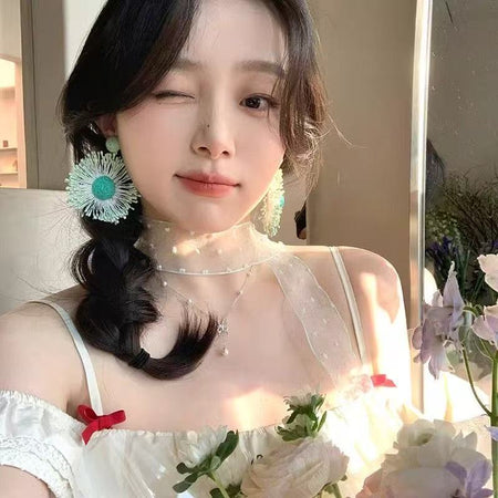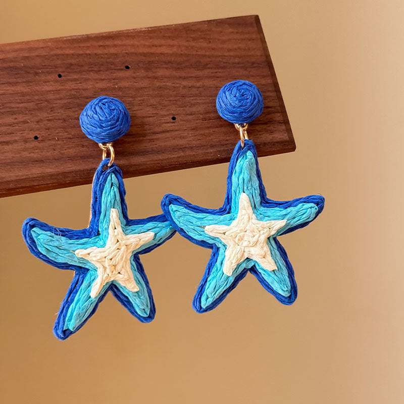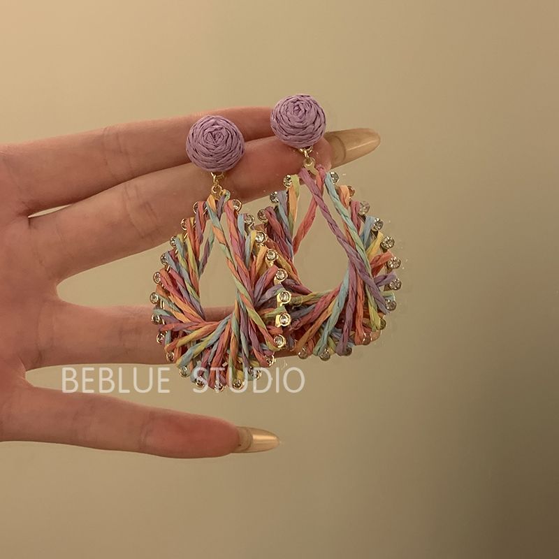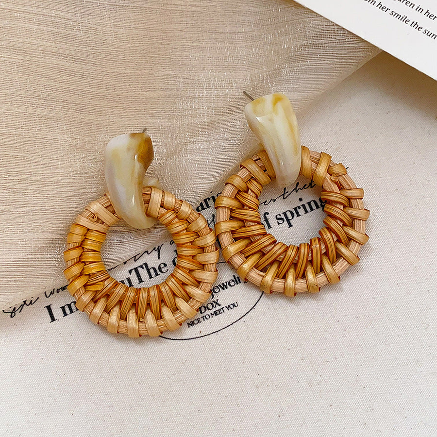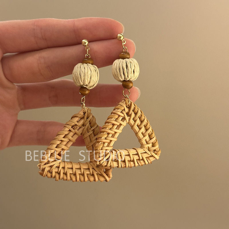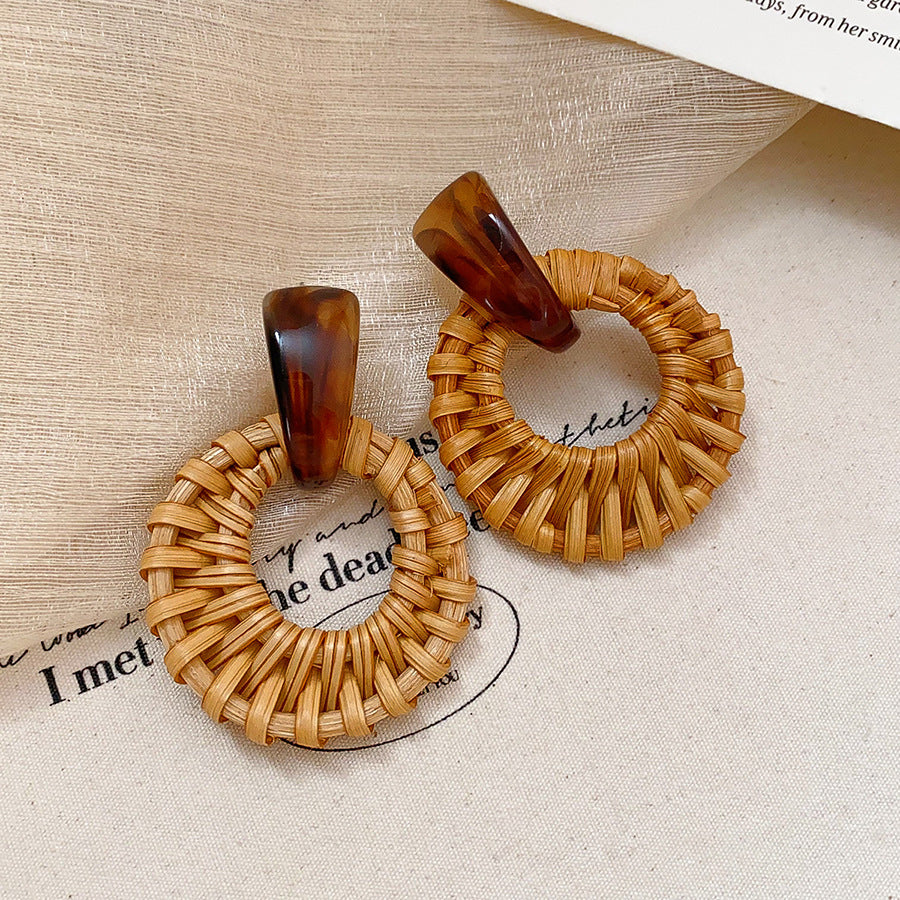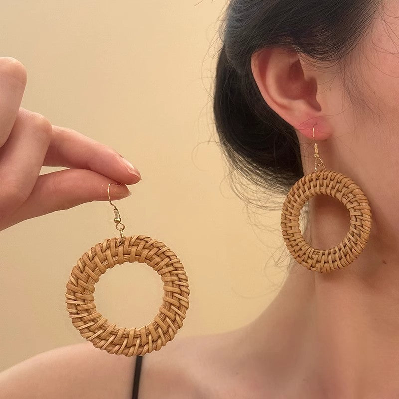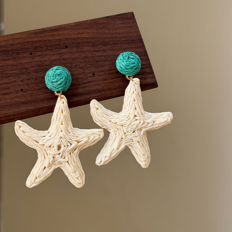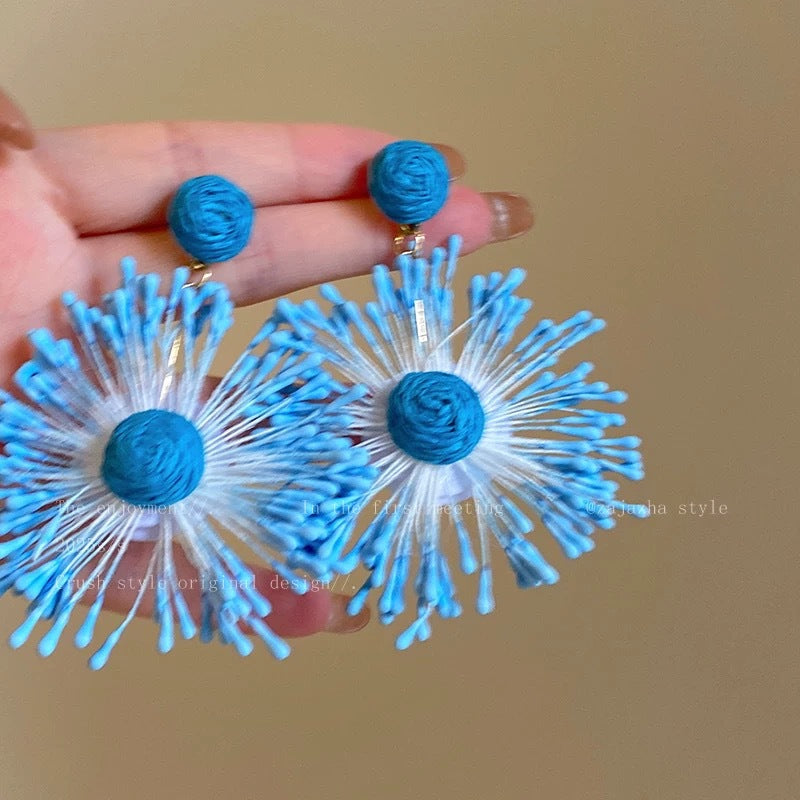 Raffia Flower Hand-Knitted Summer Vacation Earrings