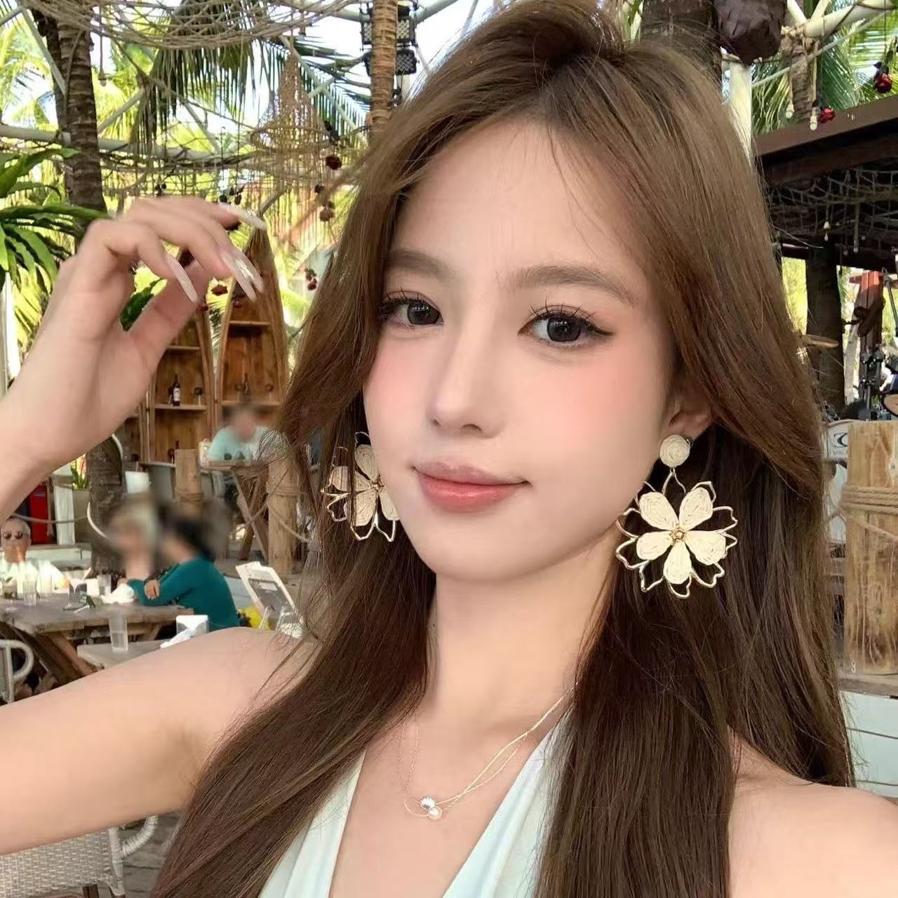 π A handmade raffia floral earringβnatural, chic, and vacation-ready.