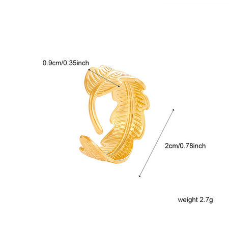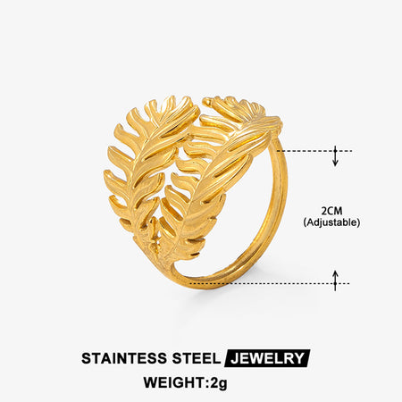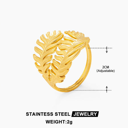 Stainless Steel Leaf Open Ring Women’s Adjustable Jewelry