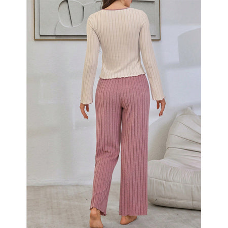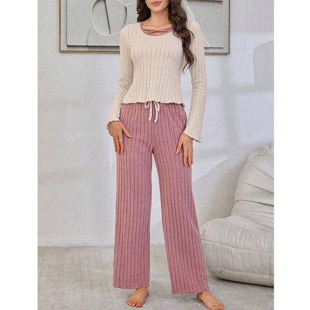 Crafted from soft, breathable knitted fabric, it’s gentle on the skin and perfect for lounging, working from home, or relaxing after a long day. The two-piece set includes a top and bottom with a modern pit strip design for added style 👩💼💖.