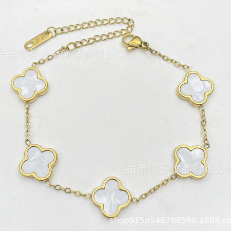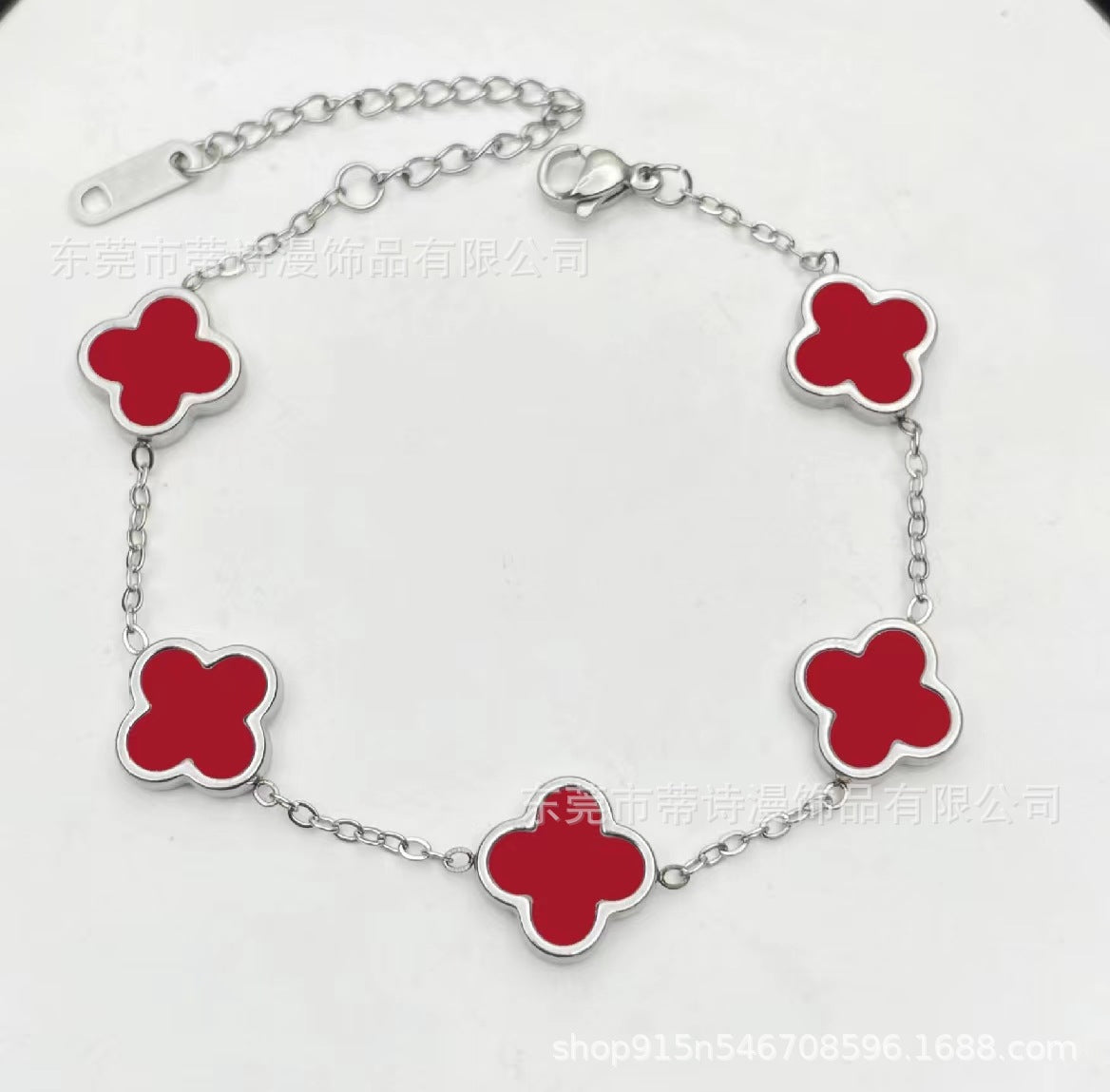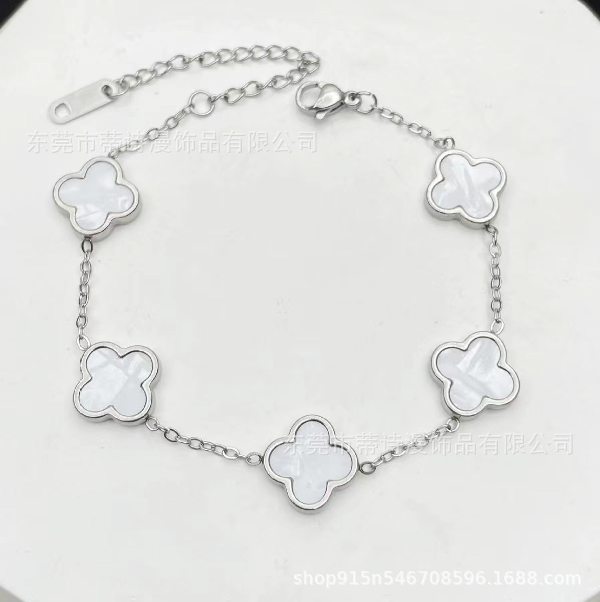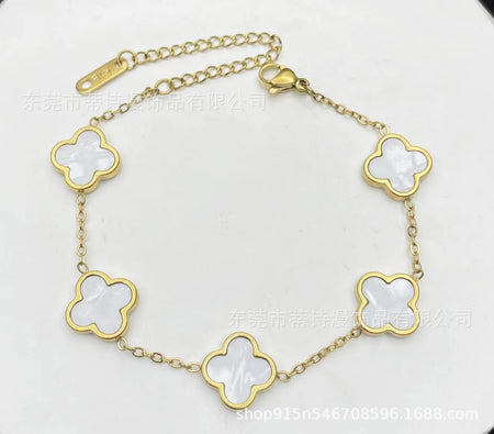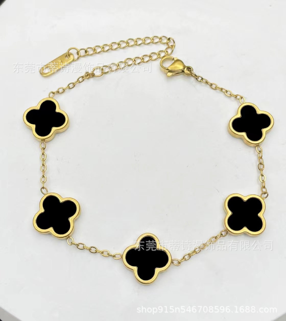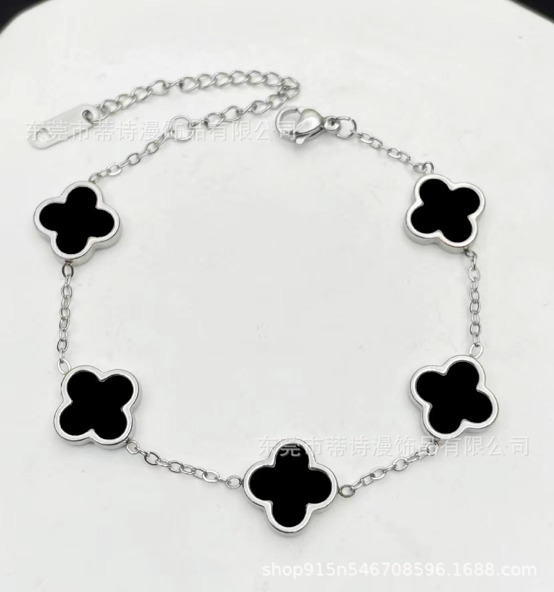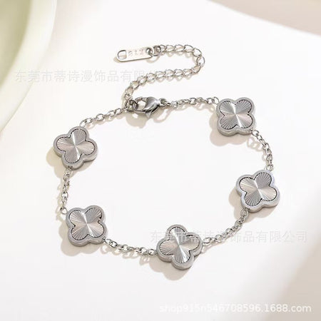 Titanium Steel Four-Leaf Clover Double-Sided Bracelet