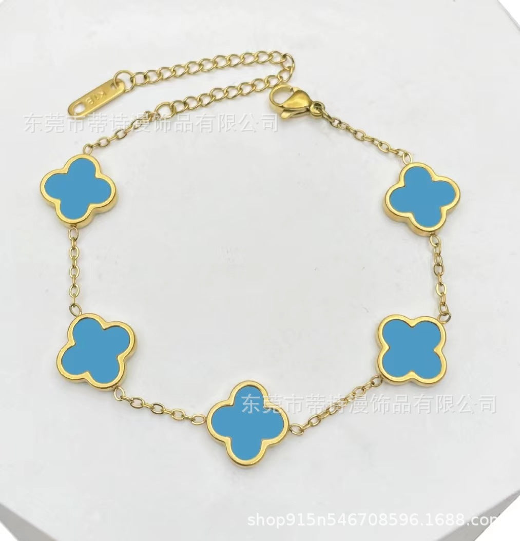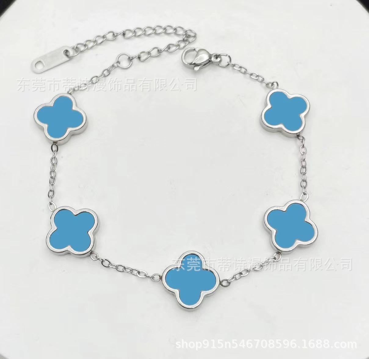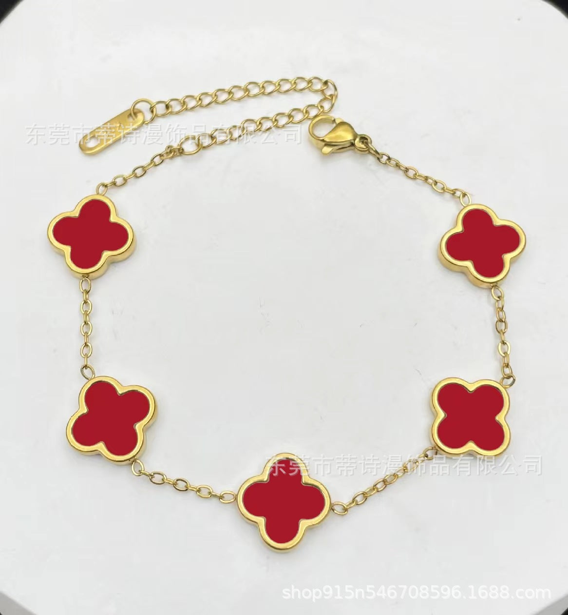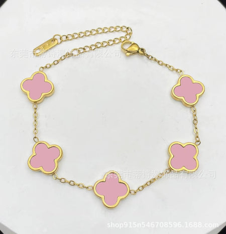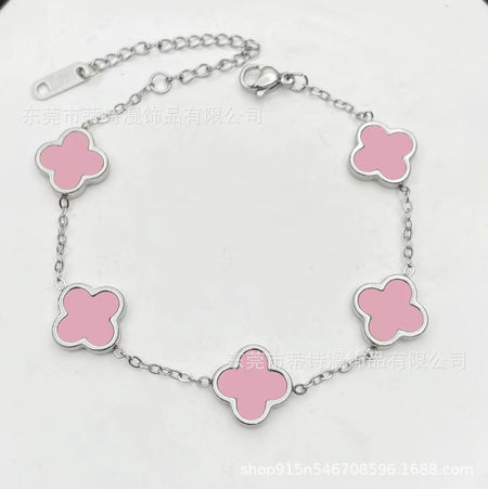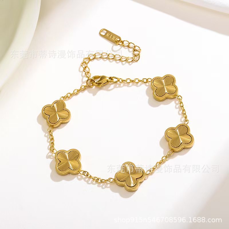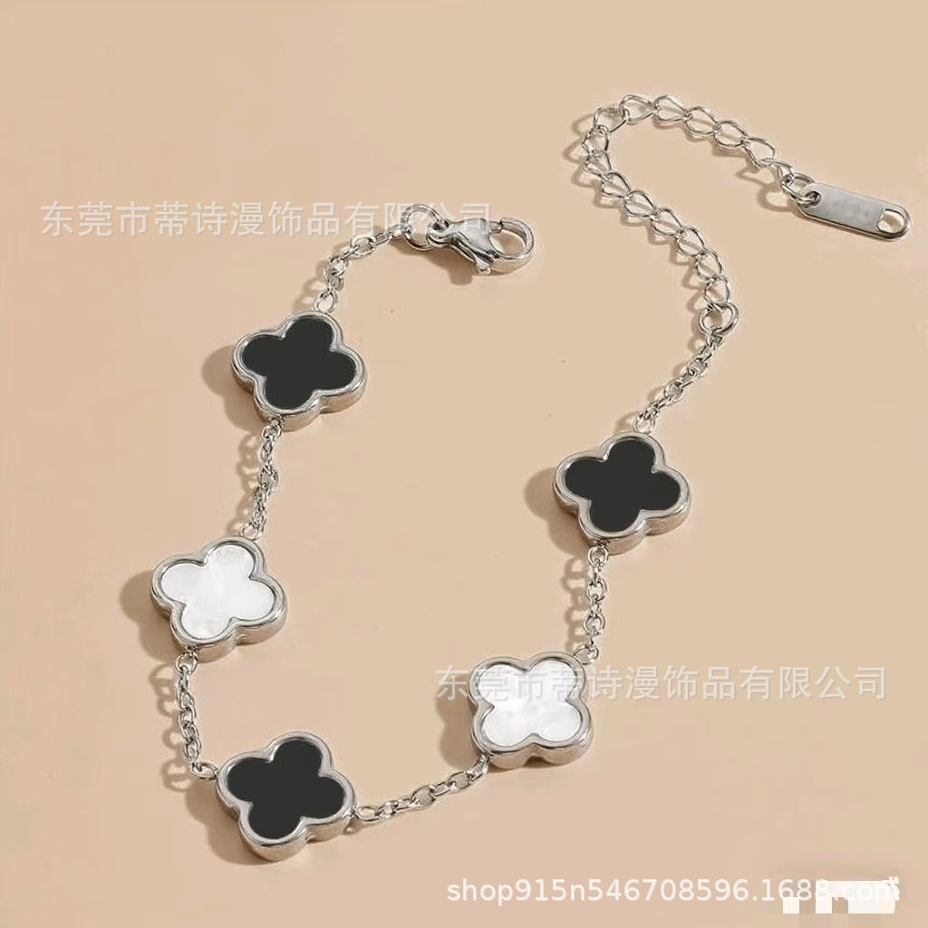 Titanium Steel Four-Leaf Clover Double-Sided Bracelet