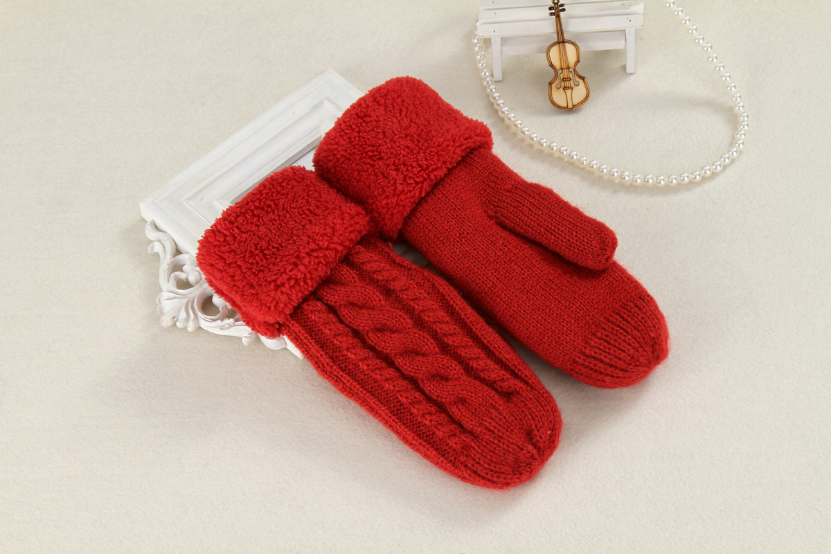 Women’s Winter Knitted Plus Velvet Padded Mittens