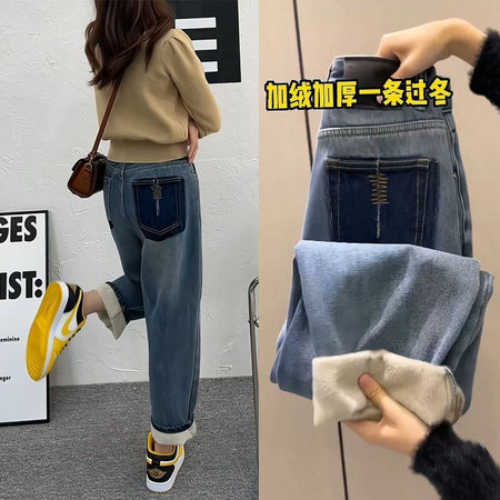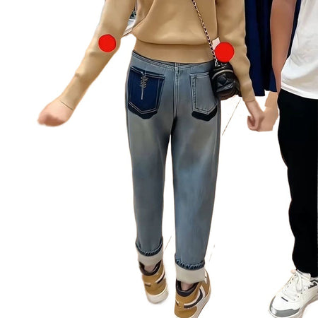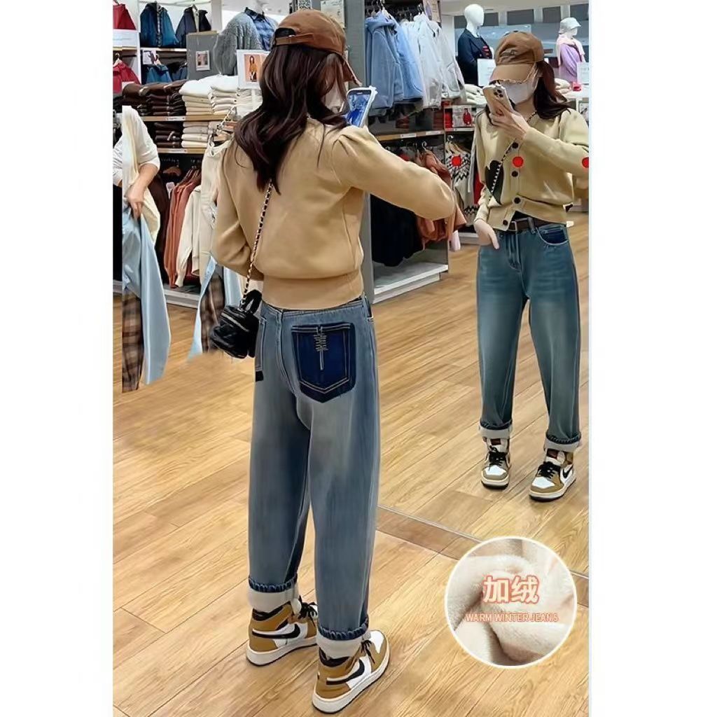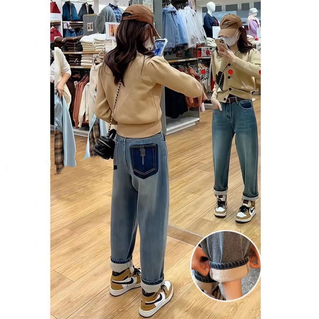 Made with thickened plus velvet lining, these jeans keep you cozy without feeling bulky. The straight loose harem design ensures easy movement while creating a relaxed yet slimming silhouette. With a high-rise waist, these jeans flatter your curves and provide a secure, comfortable fit all day long. 🌸✨
