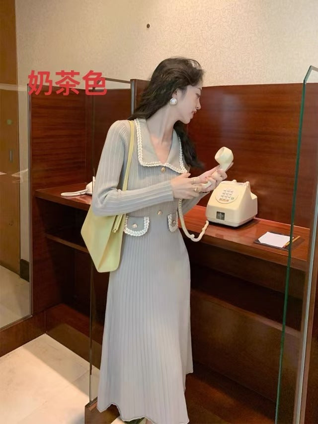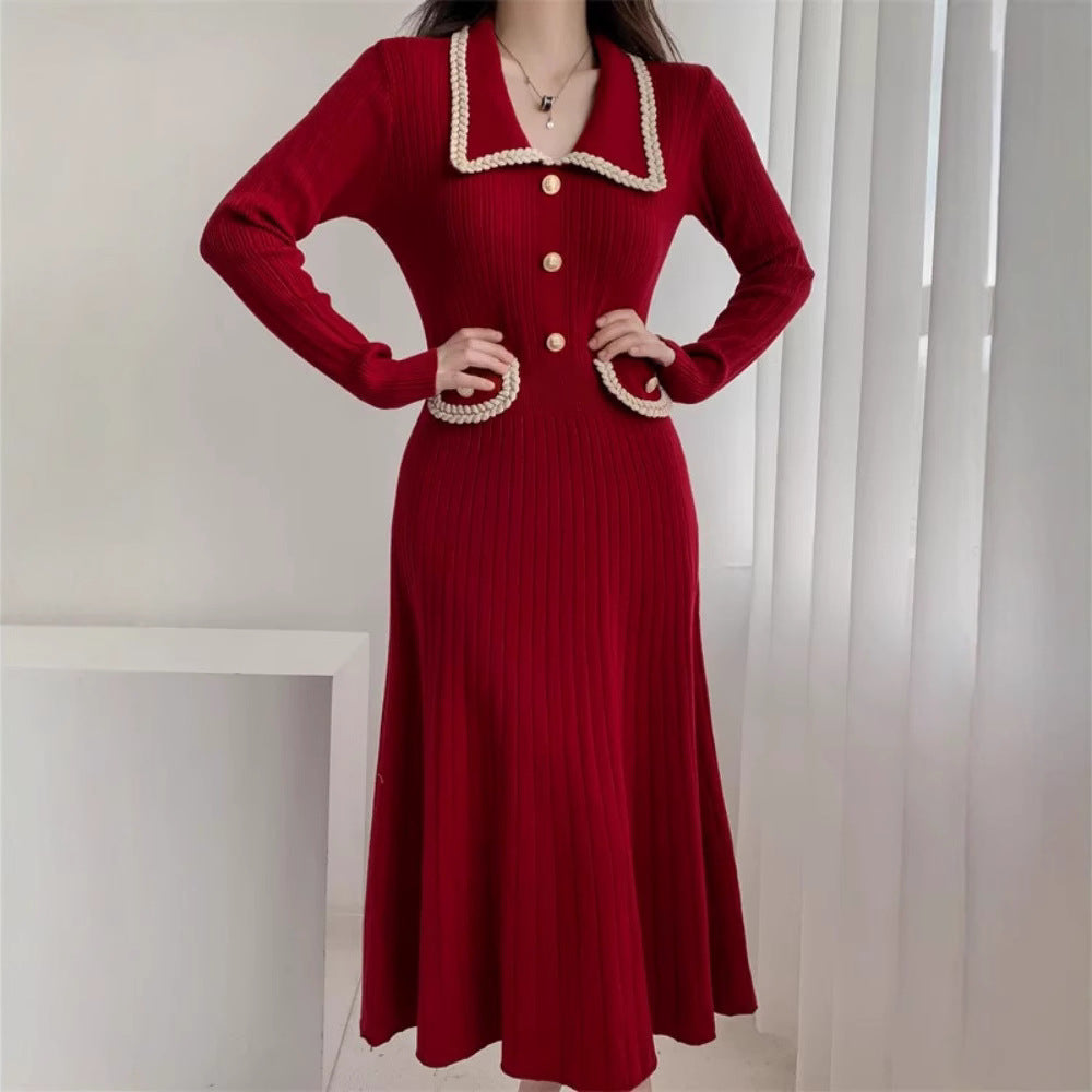 Elevate your wardrobe with this elegant French Chanel style long-sleeved knitted dress for women, perfect for spring, autumn, and winter seasons. Featuring a flattering waisted slim-fit design and mid-length cut, this sweater dress blends classic sophistication with modern comfort. 🍂🌸❄️