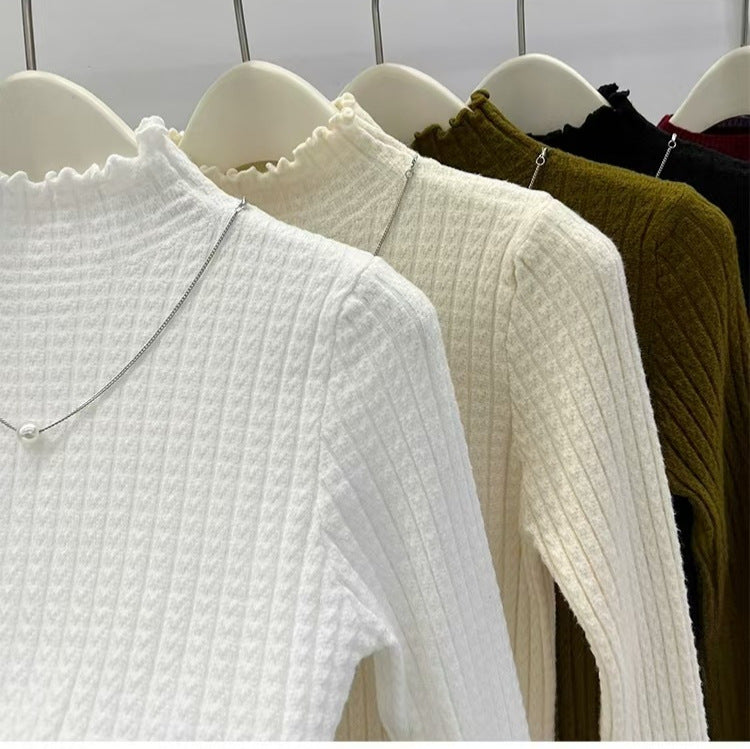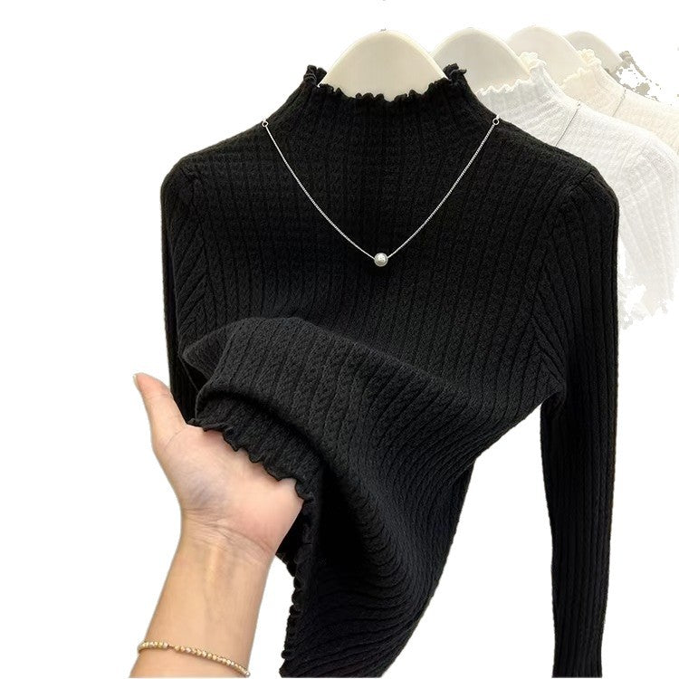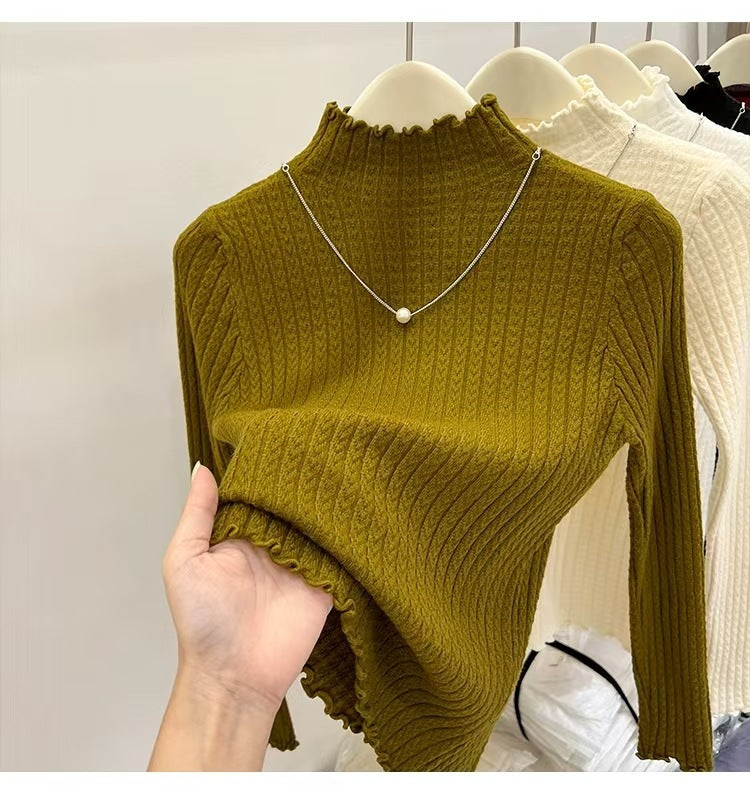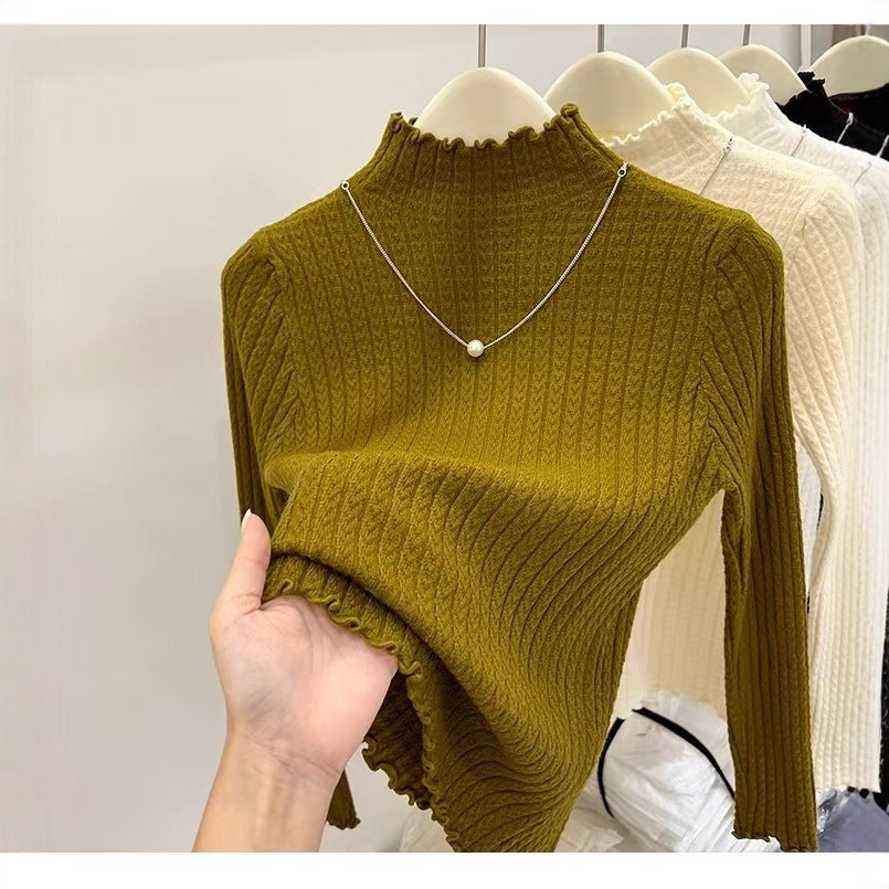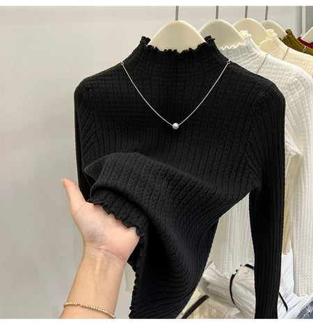 The half turtleneck design gives just the right touch of sophistication while keeping you warm without feeling bulky. Its solid color simplicity makes it versatile and easy to pair with jeans, skirts, or trousers. Whether worn as an inner layer under blazers and coats or styled solo for a sleek minimalist look, this top is your go-to fashion staple. 🌟