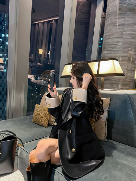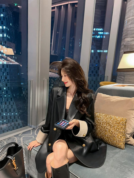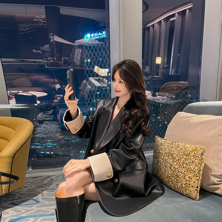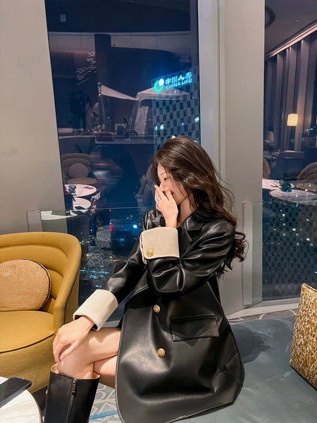 Crafted from premium PU leather, it offers a sleek, polished look while remaining lightweight and soft to the touch. The loose casual design ensures comfort for layering over sweaters, t-shirts, or even color-matching suits, giving you versatile styling options 🌸. Its timeless black color effortlessly complements any outfit, from jeans to skirts, making it ideal for casual outings, work, or evening strolls.