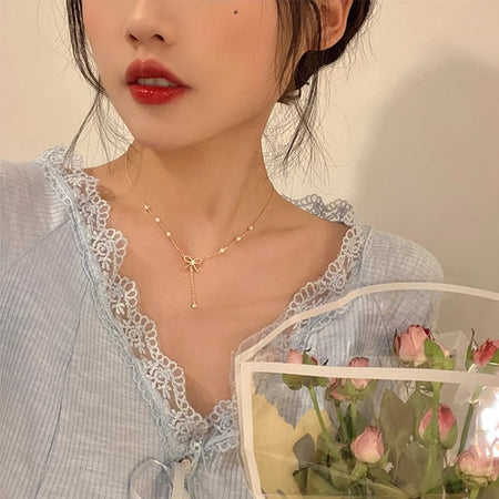 Pearl clavicle chain with delicate detailing