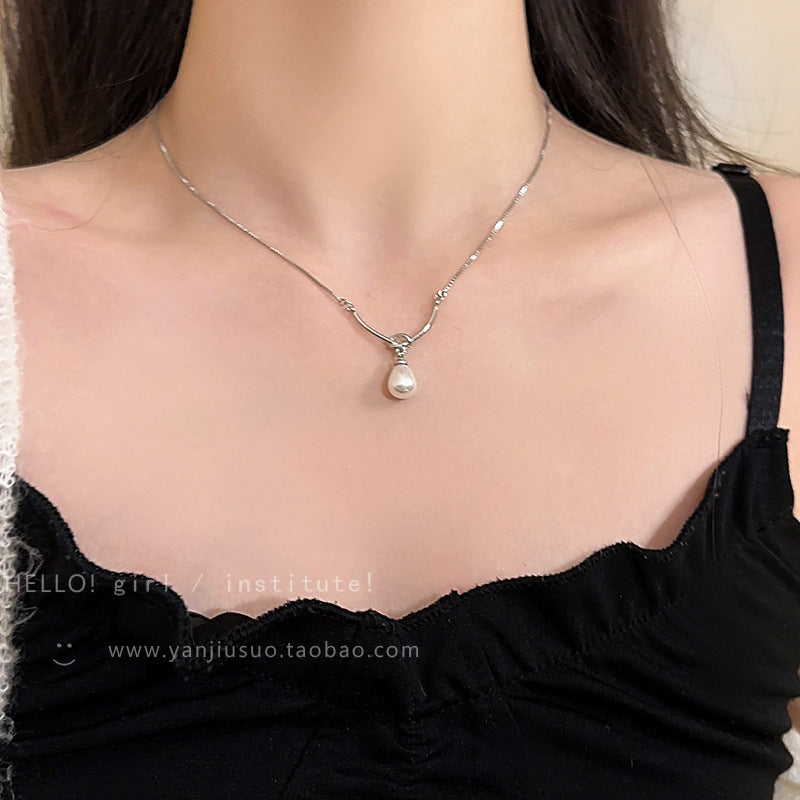 Pearl & Titanium Steel Luxury Clavicle Necklace