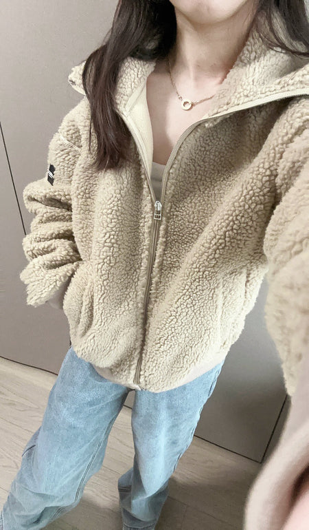 Its lamb wool lining keeps cold winds away, while the turn-down collar adds a casual yet polished vibe. Easy to pair with anything, this jacket is an everyday winter essential.