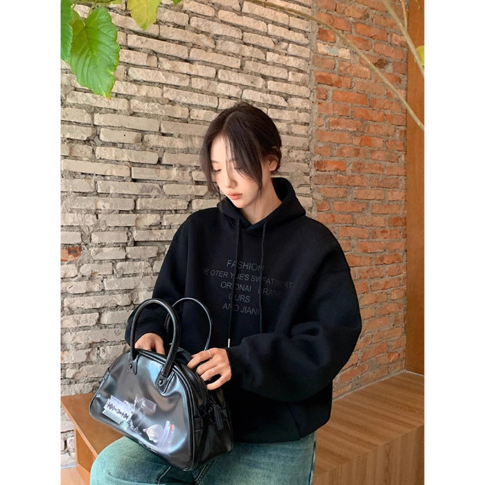Crafted from soft velvet fabric, it feels gentle on the skin while providing warmth and a touch of luxury. The loose fit ensures comfort and ease of movement, while the letter print design adds a modern, fashionable flair. Its mid-length cut pairs perfectly with jeans, leggings, or skirts, making it an all-match wardrobe staple 👖✨.