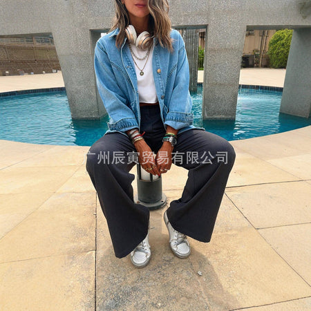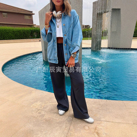 Made from soft washed denim and cotton, this jacket provides warmth while keeping a relaxed, loose fit for layering over sweaters or tops. The water-blue hue adds a fresh, vibrant touch to your seasonal wardrobe, and the lapel collar with double pockets enhances the retro charm while offering practicality. πΈβ¨