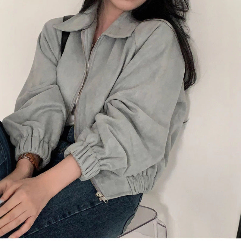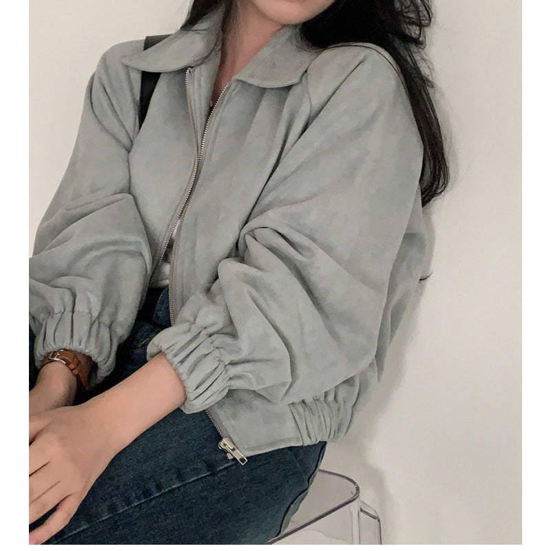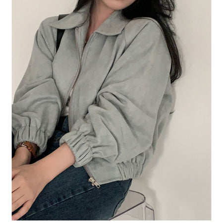 Bring effortless charm to your wardrobe with this Korean chic autumn suede short jacket 🌸. Featuring a French retro lapel design with a stylish zipper closure, this piece is both elegant and versatile. The soft suede texture adds a touch of luxury, while the loose, comfy fit makes it perfect for layering in the cooler months.
