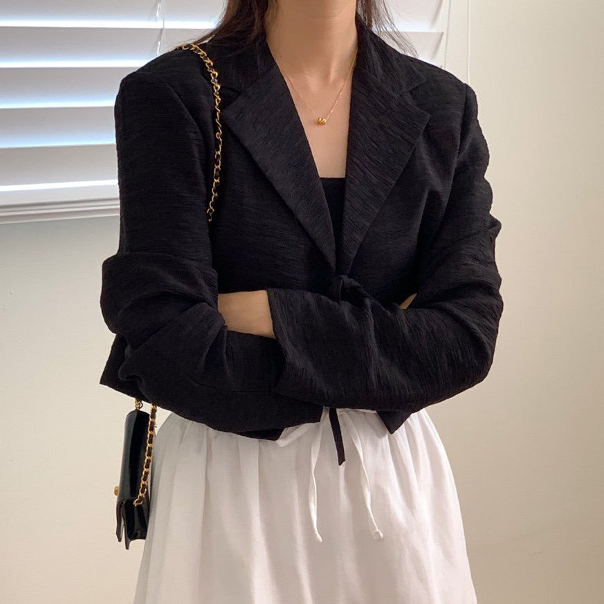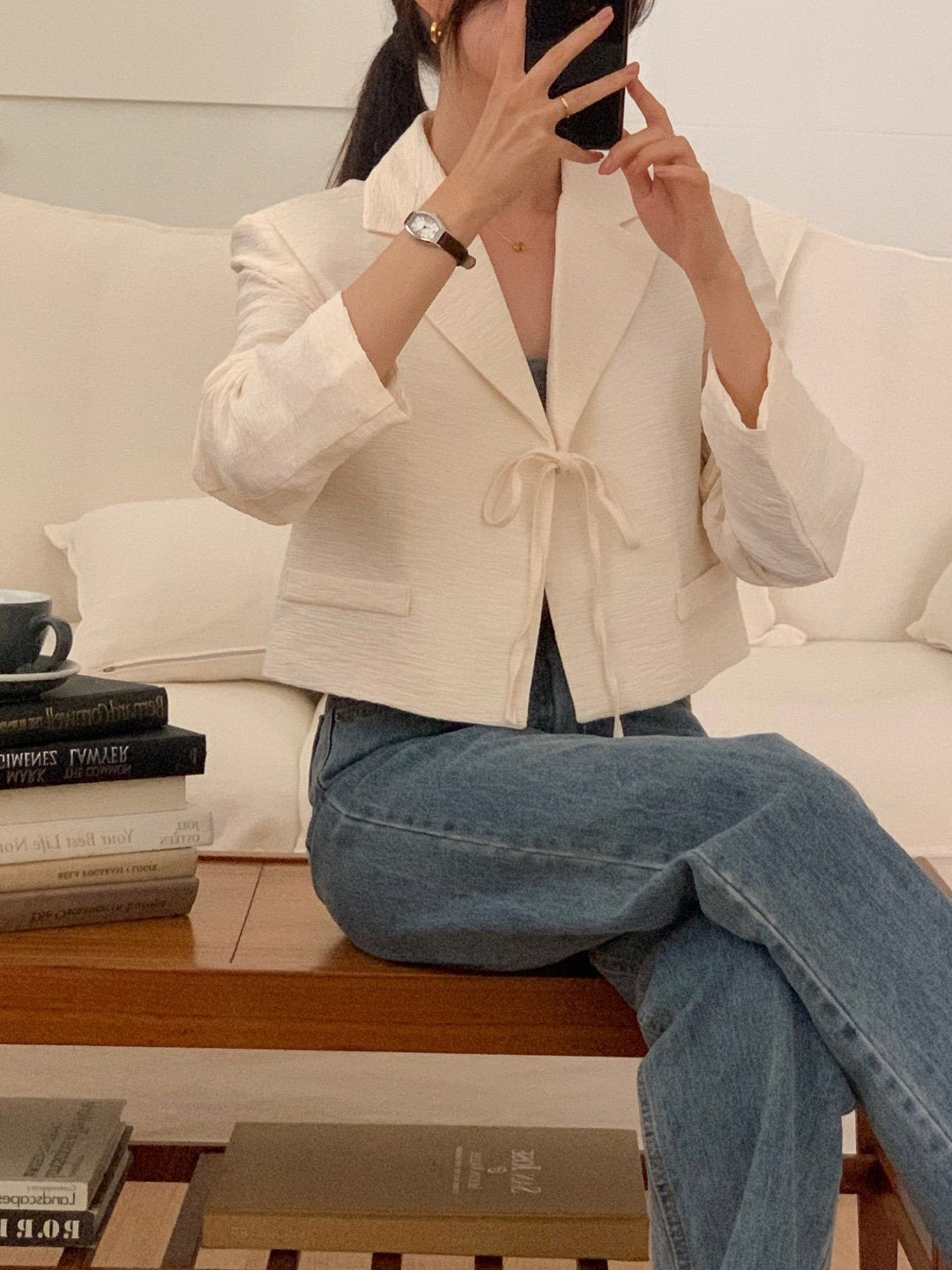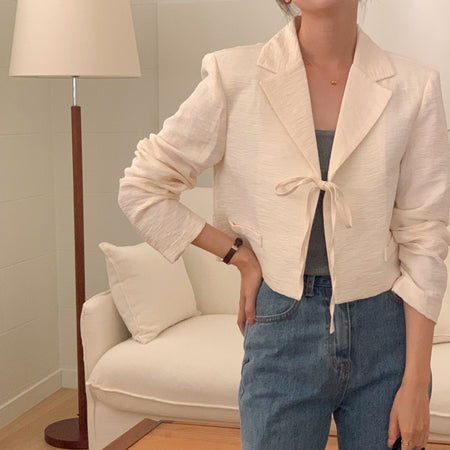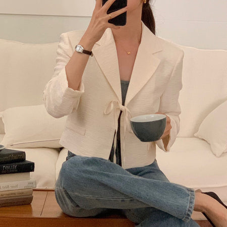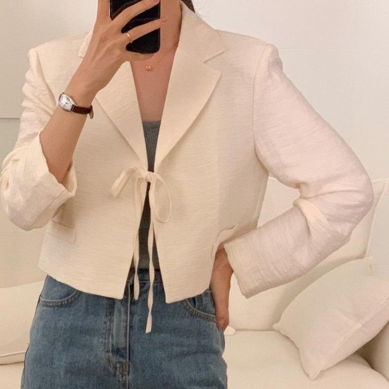Elevate your wardrobe with the Korean Chic Small Suit Top for Women 🌸✨. Featuring a gentle temperament and versatile design, this short jacket combines a bow-tie detail with long sleeves for a refined, fashion-forward look perfect for work, commuting, or casual outings.