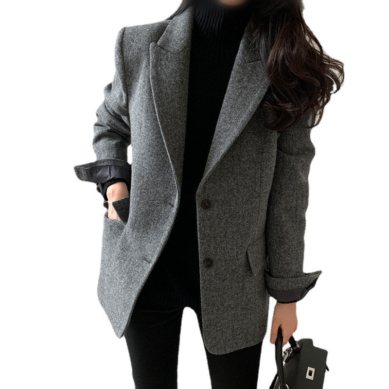 Add a touch of Korean elegance to your wardrobe with this 2025 Autumn/Winter Women’s Woolen Suit Jacket 🇰🇷✨. Crafted in a pure solid color design, it brings out a chic yet minimalist vibe, perfect for modern women who love K-fashion style.