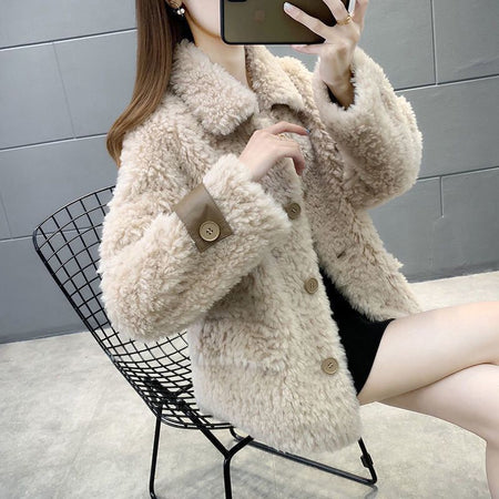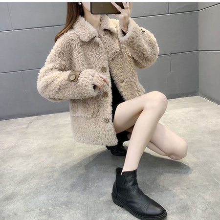 Lamb Wool Fur Integrated Short Chanel-Style Coat